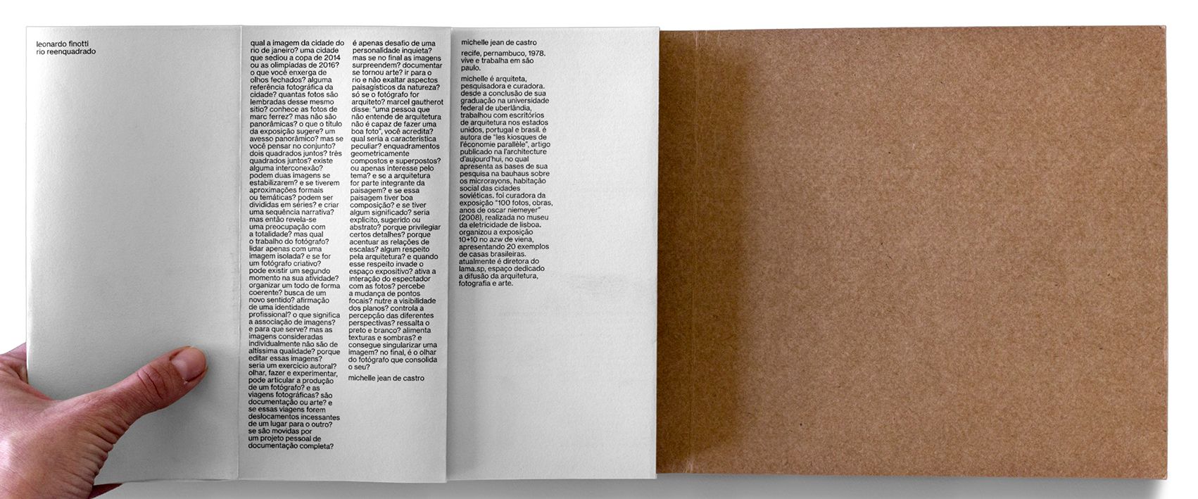novo sentido? afirmação de uma identidade profissional? o que significa a associação de imagens? e para que serve? mas as imagens consideradas individualmente não são de altíssima qualidade? porque editar essas imagens? seria um exercício autoral? olhar, fazer e experimentar, pode articular a produção de um fotógrafo? e as viagens fotográficas? são documentação ou arte? e se essas viagens forem deslocamentos incessantes de um lugar para o outro? se são movidas por um projeto pessoal de documentação completa? é apenas desafio de uma personalidade inquieta? mas se no final as imagens surpreendem? documentar se tornou arte? ir para o rio e não exaltar aspectos paisagísticos da natureza? só se o fotógrafo for arquiteto? marcel gautherot disse: “uma pessoa que não entende de arquitetura não é capaz de fazer uma boa foto”, você acredita? qual seria a característica peculiar? enquadramentos geometricamente compostos e superpostos? ou apenas interesse pelo tema? e se a arquitetura for parte integrante da paisagem? e se essa paisagem tiver boa composição? e se tiver algum significado? seria explicito, sugerido ou abstrato? porque privilegiar certos detalhes? porque acentuar as relações de escalas? algum respeito pela arquitetura? e quando esse respeito invade o espaço expositivo? ativa a interação do espectador com as fotos? percebe a mudança de pontos focais? nutre a visibilidade dos planos? controla a percepção das diferentes perspectivas? ressalta o preto e branco? alimenta texturas e sombras? e consegue singularizar uma imagem? no final, é o olhar do fotógrafo que consolida o seu?