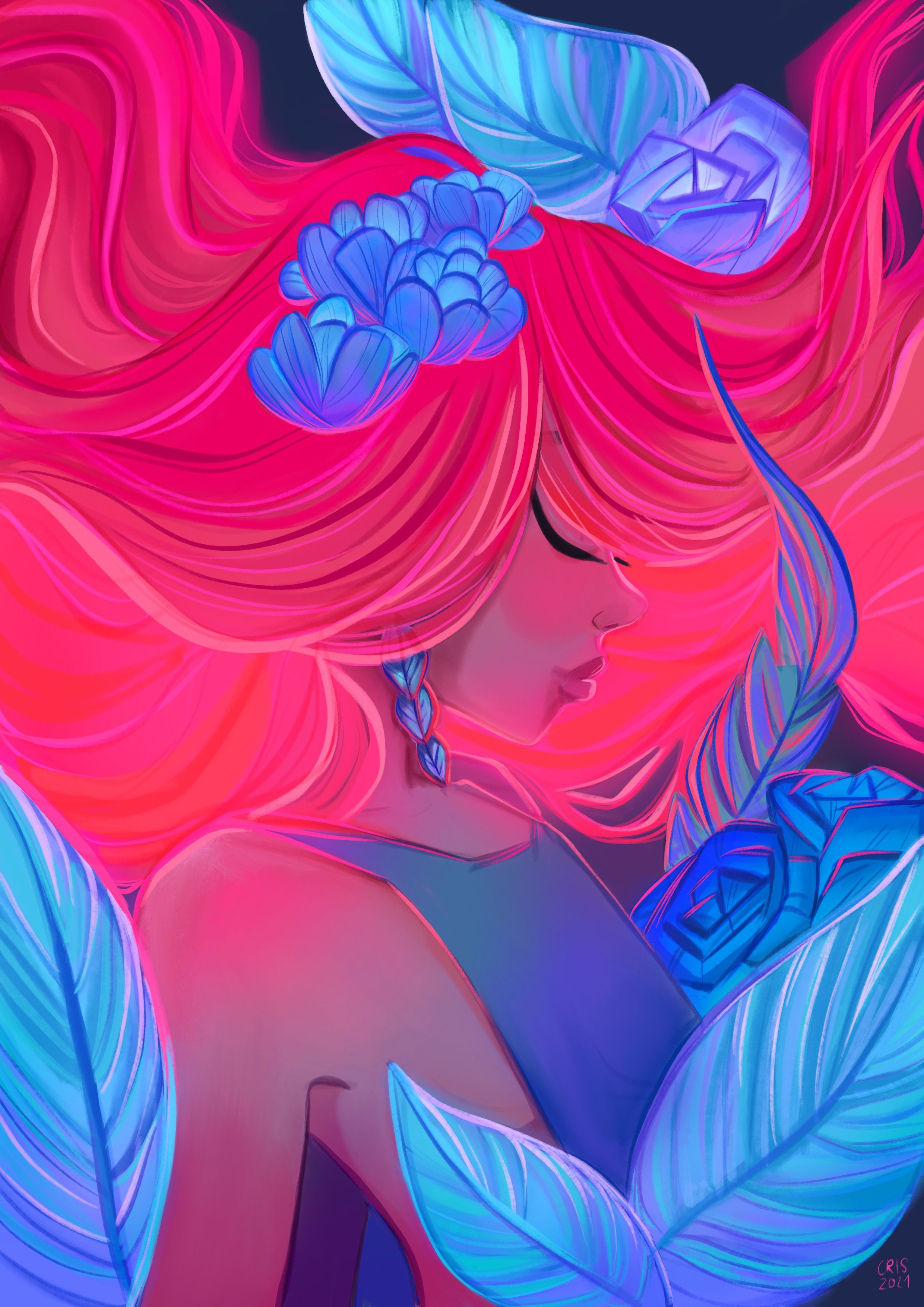 Pink Flow es una de mis ilustraciones favoritas, no solo por la paleta de color sino también por lo mucho que aprendí durante su proceso en el tratamiento de la luz y las formas.