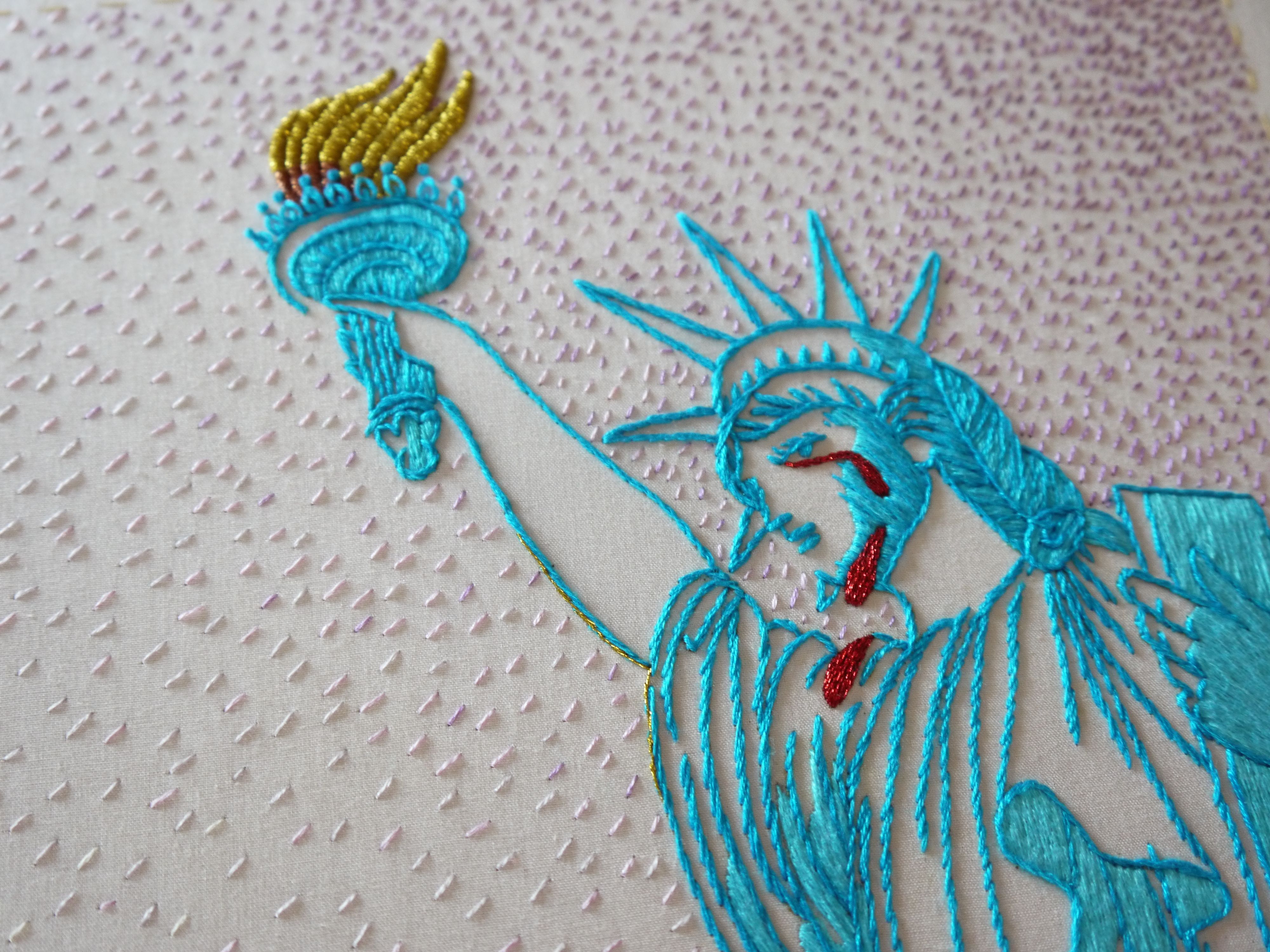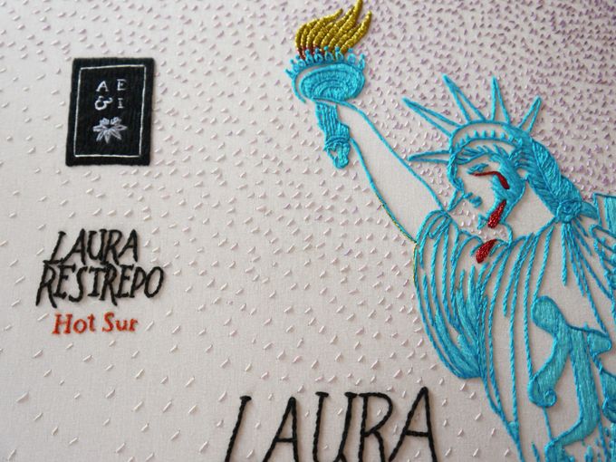 La editorial Planeta me contactó para crear la imagen de la cubierta de este libro de Laura Restrepo y fue una gran noticia ya que se convirtió en mi primera portada bordada. Hot Sur es un homenaje a la mujer y una crítica al mundo occidental capitalista.