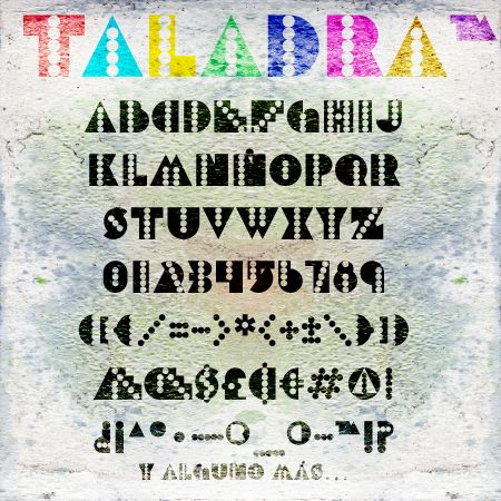 Tipografía modular a partir de rectángulos, triángulos y círculos, posteriormente "taladradas"…