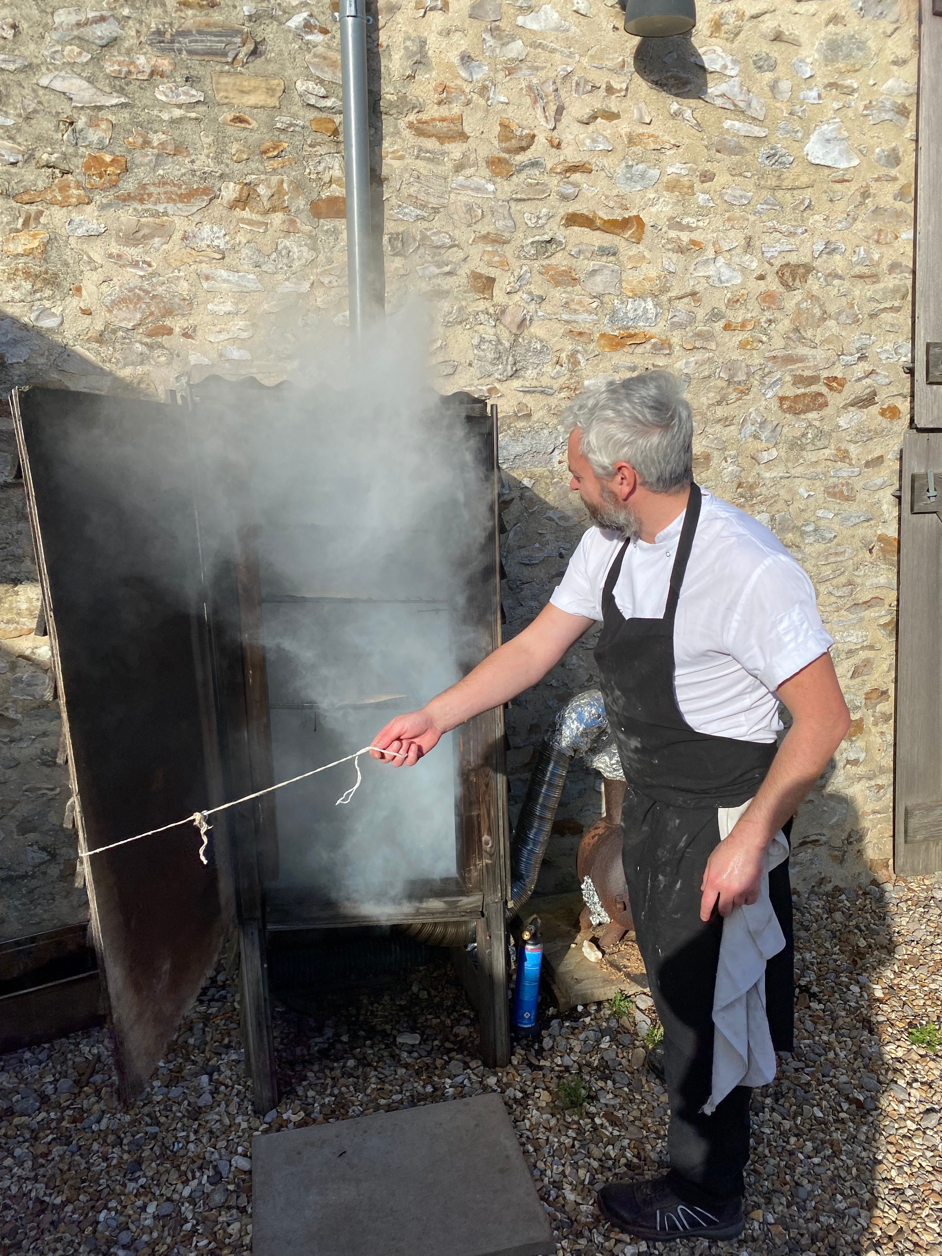 Gelf Anderson who was recently on Cooking the Books shows me his smoker at River Cottage on a balmy November lunchtime.
