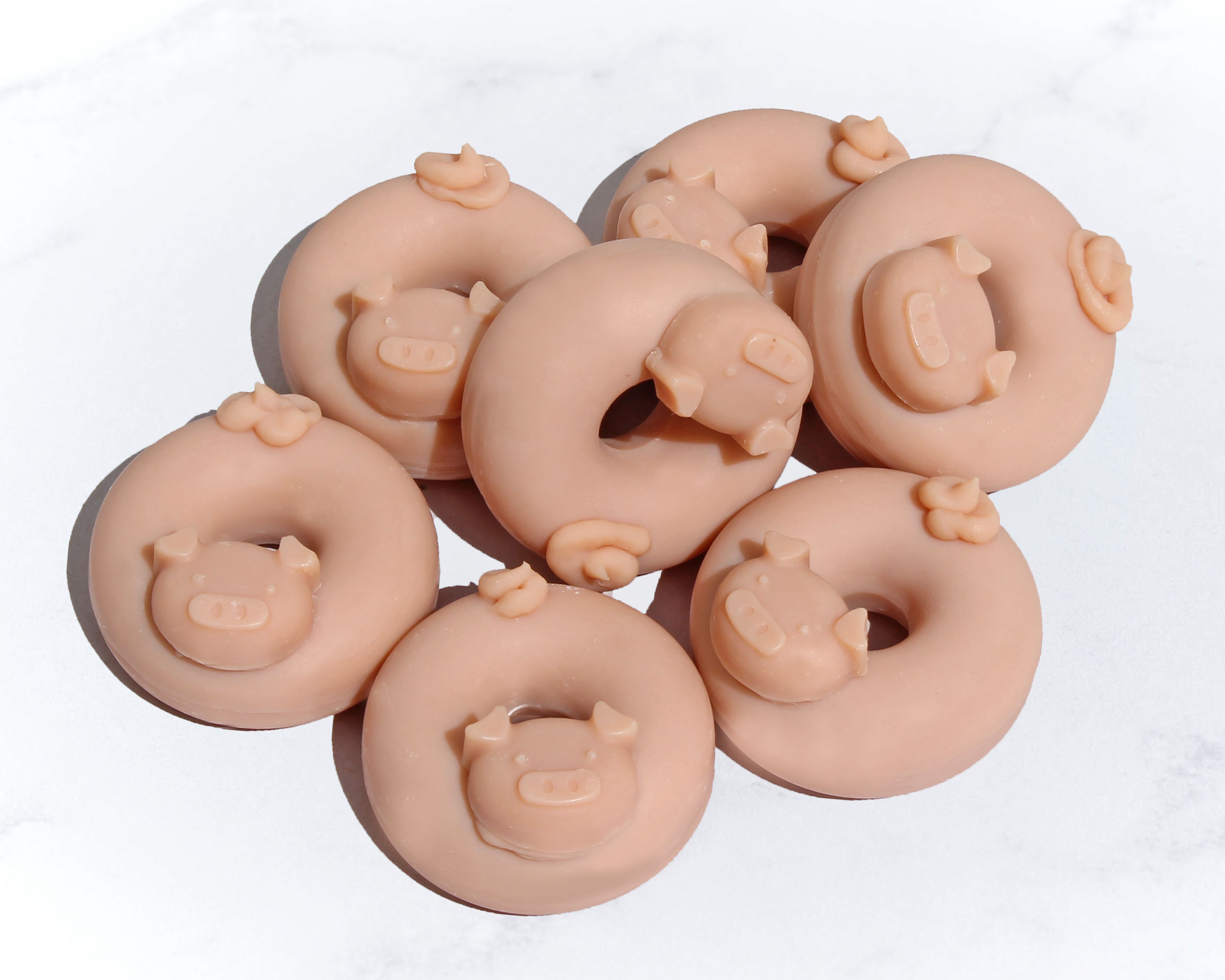 Este proyecto fue uno de los más difíciles de hacer. Kerry Alimentos es una compañía multinacional que iba a tener su fiesta de 50 años en México y se pusieron en contacto con nosotros para sus regalos corporativos. Dentro de Kerry hay varias áreas de comidas diferentes (lácteos, panes, carnes, snacks y más) y querían que les hiciéramos jabones para sus diferentes áreas. Para lácteos nos fue fácil, ya que les hicimos unos quesitos y unos cupcakes en formas de cereal. Para pan les realizamos unas conchas de pan dulce y unas donas, pero para carnes no sabíamos qué hacerles. Es difícil pensar en un jabón que pueda emular un pedazo de carne, así que nos tuvimos que poner creativos. De ahí salieron los jabones de "Cerdonita" (un cerdito en forma de dona) y la hamburguesa. Al final usamos lo que teníamos para hacer los diseños que necesitaban y pudimos complacer a nuestro cliente.