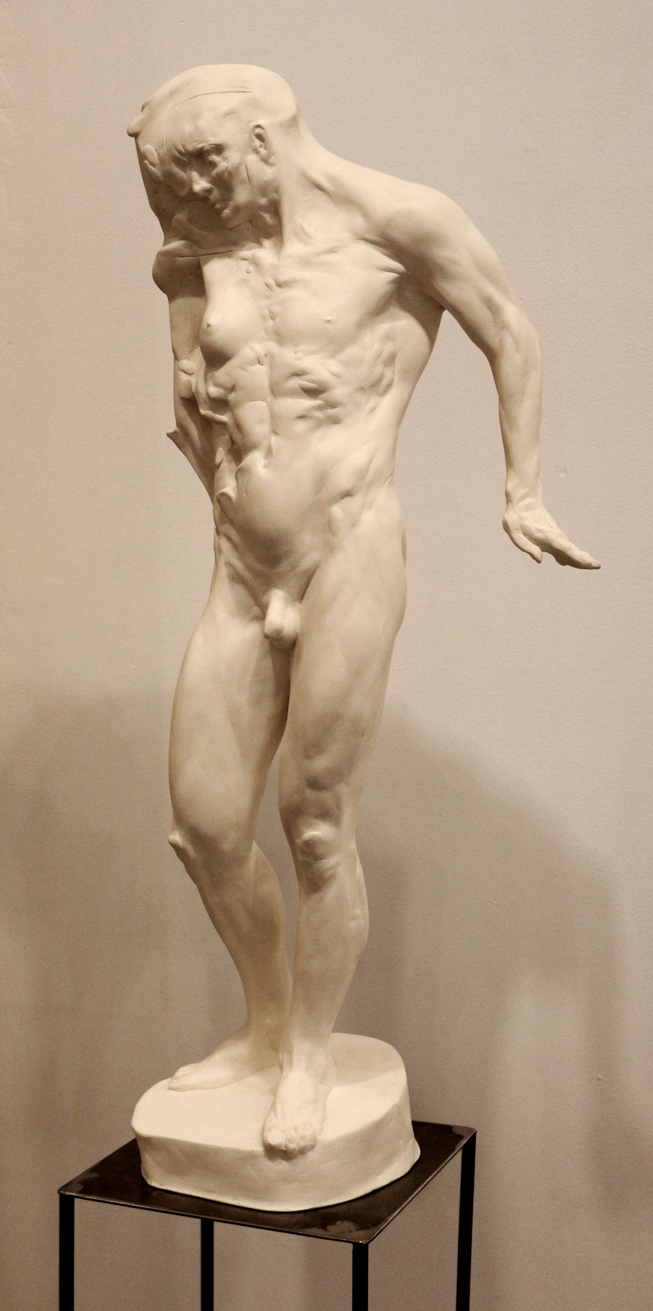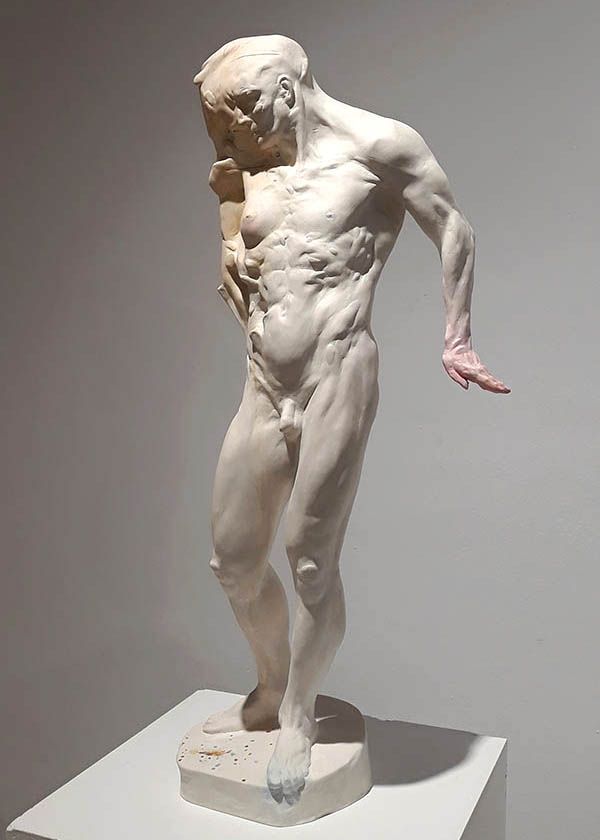 Dual es una pieza de 80 centímetros de altura realizada en resina y fibra de vidrio como material definitivo. La realicé con arcilla blanca y estructura o armazón metálico. Puse mucha intención en la anatomía y en la dinámica.