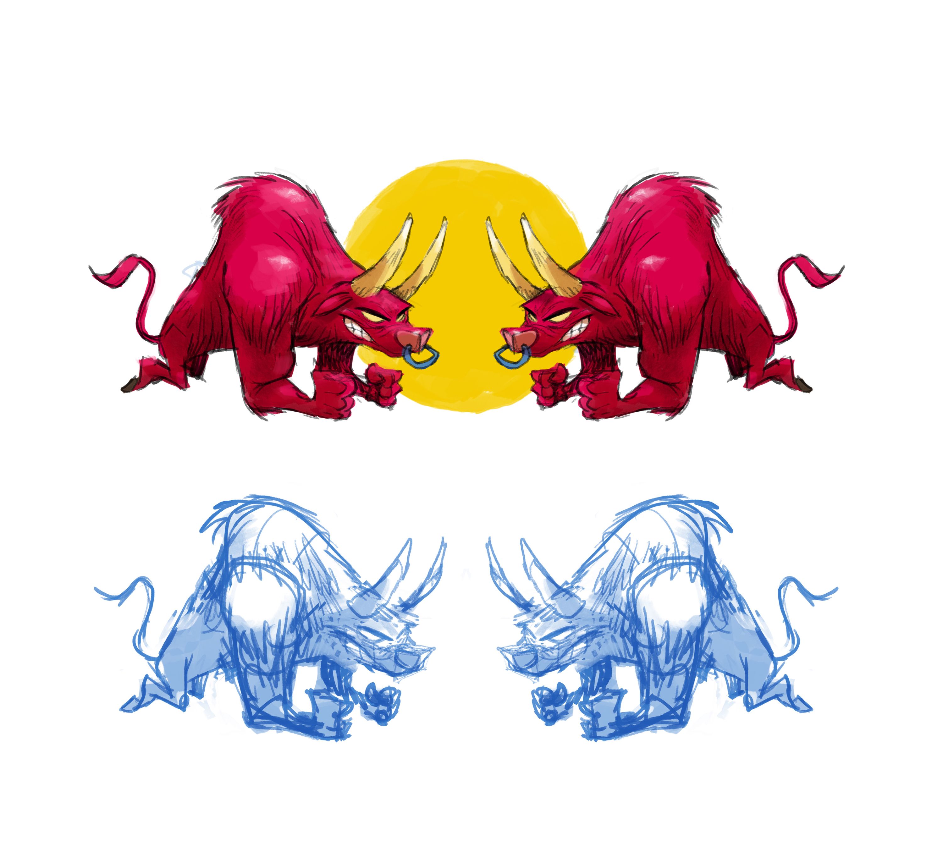 A few samples of my character design and visual development work for Red Bull, ca. 2008-2009. The cartoonish bulls logo version (Rookie Bullz) was actually used as a logo for young Red Bull sponsored ski jumper athletes.