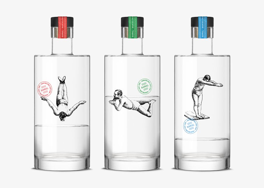 El diseño de su línea de ginebras da continuidad a la temática marina que caracteriza el local, gracias a un bañista que interactúa con el contenido de cada botella. Así el vínculo entre este personaje y la propia ginebra permite crear un juego visual en cada una de las diferentes variedades conforme las botellas se van vaciando.