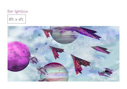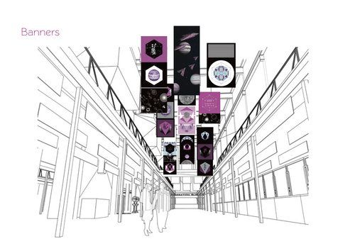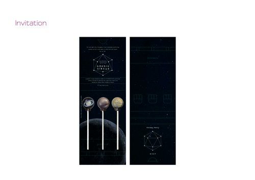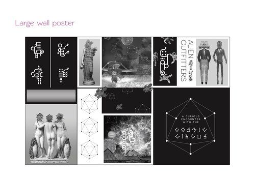 I created the illustrations, weird, alien typography, graphics and the logo for this project. The theme was "cosmic circus" which is very much in my style. I created the spaceships in Sketchup and mapped kaleidoscope images onto the them before exporting them as transparent tifs. I had a lot of fun!
