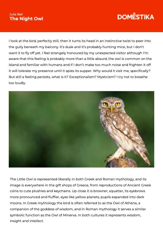 I wrote this piece as a commission, as an example for my non-fiction course for Domestkia, although it's something I've wanted to write about for a while. The piece is a meditation on the meaning of superstition - especially around owls, and the blue mati worn everywhere in Greece and across the Middle East to ward off the evil eye. I was preparing for my course while I was teaching for Skyros Holidays, and this piece was also a means of capturing my memories of being in Skyros over the years. I hope you enjoy it.