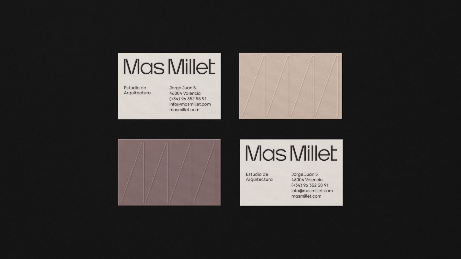 Mas Millet’s conceptual proposal aims to highlight the importance of architecture and interior design, emphasizing their versatile and effective ability to adapt to different spaces and projects. The focus is on the initials of the studio’s name, Mas Millet, which coincidentally share the letter «M,» graphically representing the two disciplines of the studio. From these initials, the aim is to convey the idea of adaptability to any type of environment, achieved through the adaptation of these letters to diverse spaces. This not only reflects the values and personality of the company but also creates a versatile and representative visual identity.