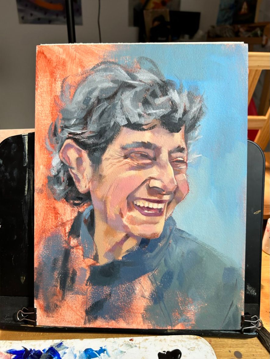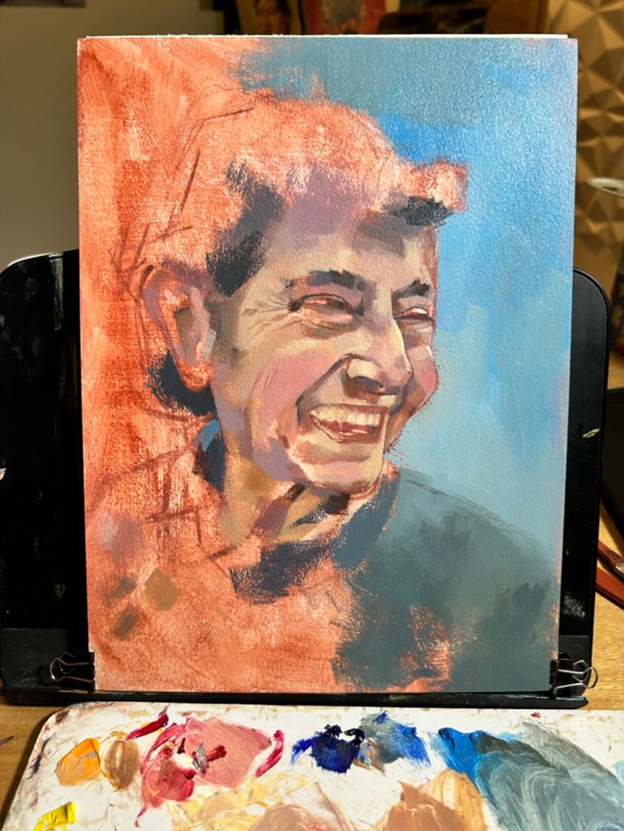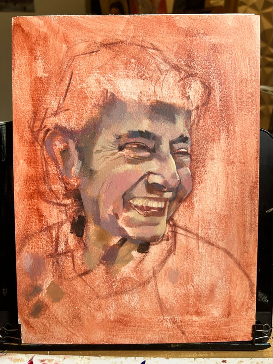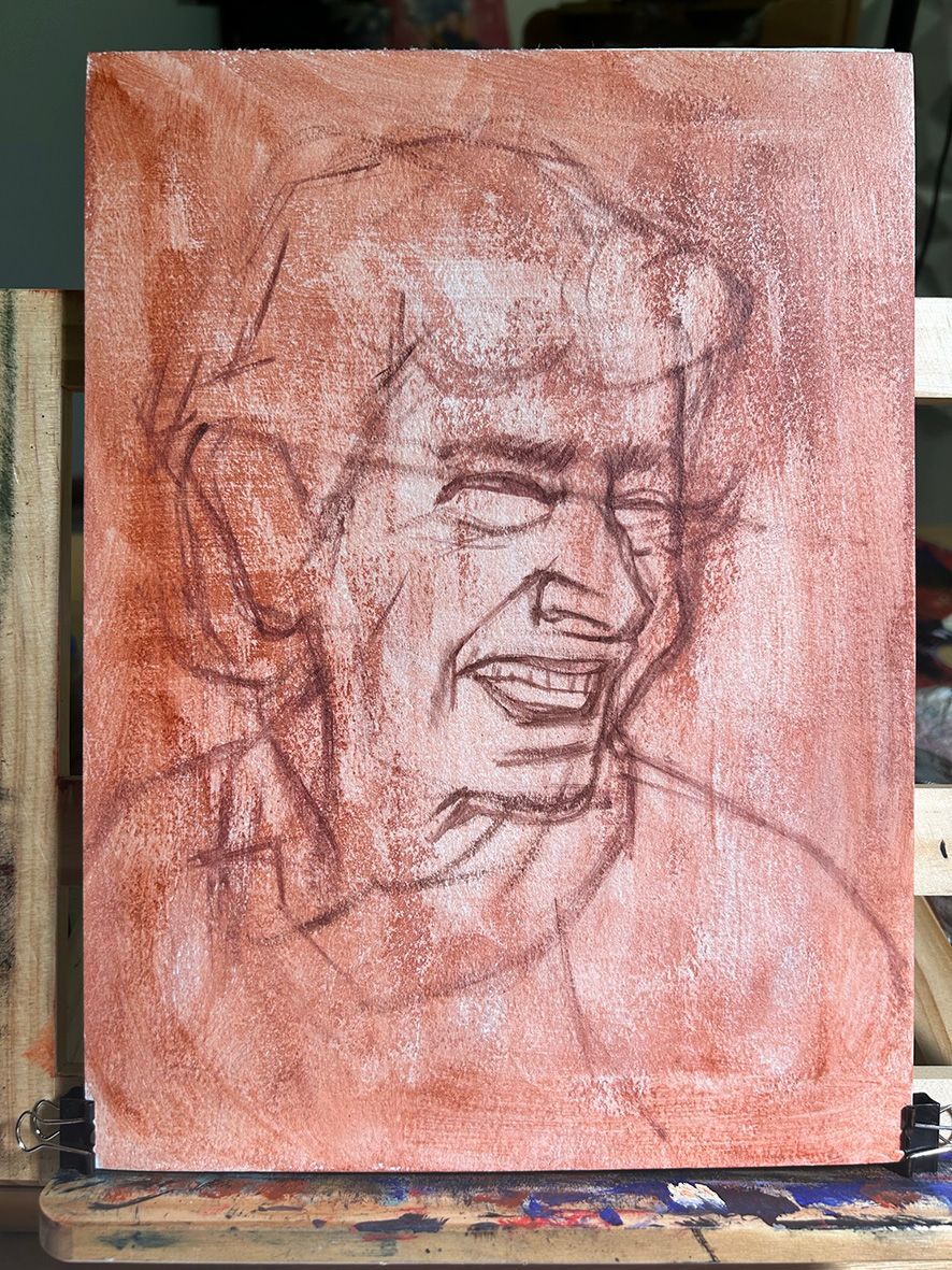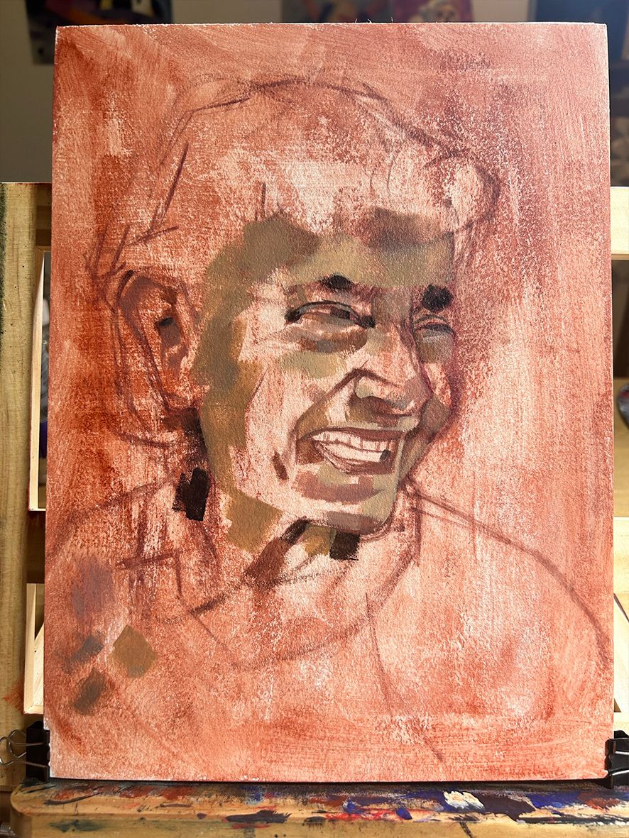 ¡Qué gran retrato Juan! Encantado de ver tu proceso con tanto detalle. ¡Realmente me gusta su atención al detalle, su uso del color en los tonos de piel y su creación de marcas texturales/variadas! Bien hecho :-)