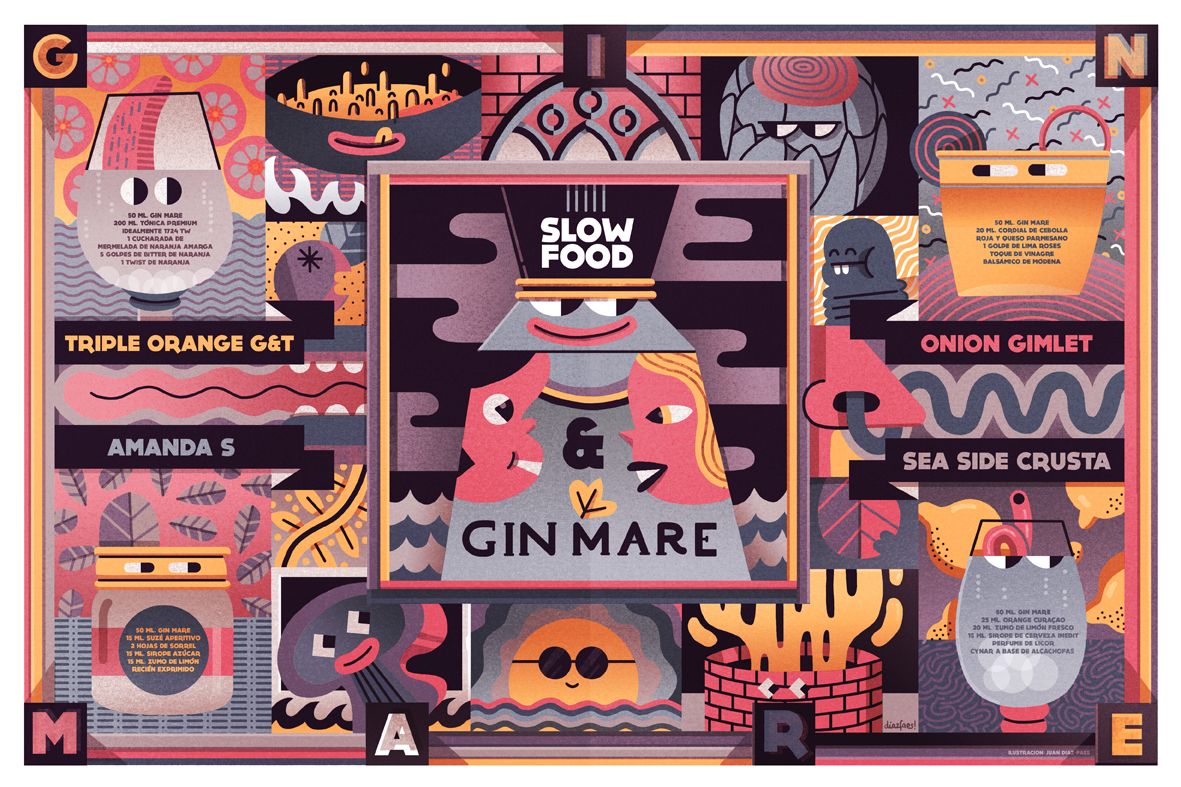 Ad Gin Gin Mare with the Slow Food Italy. In the advertisement we had to explain 4 cocktails with different ingredients (slow Food) and Gin Mare.