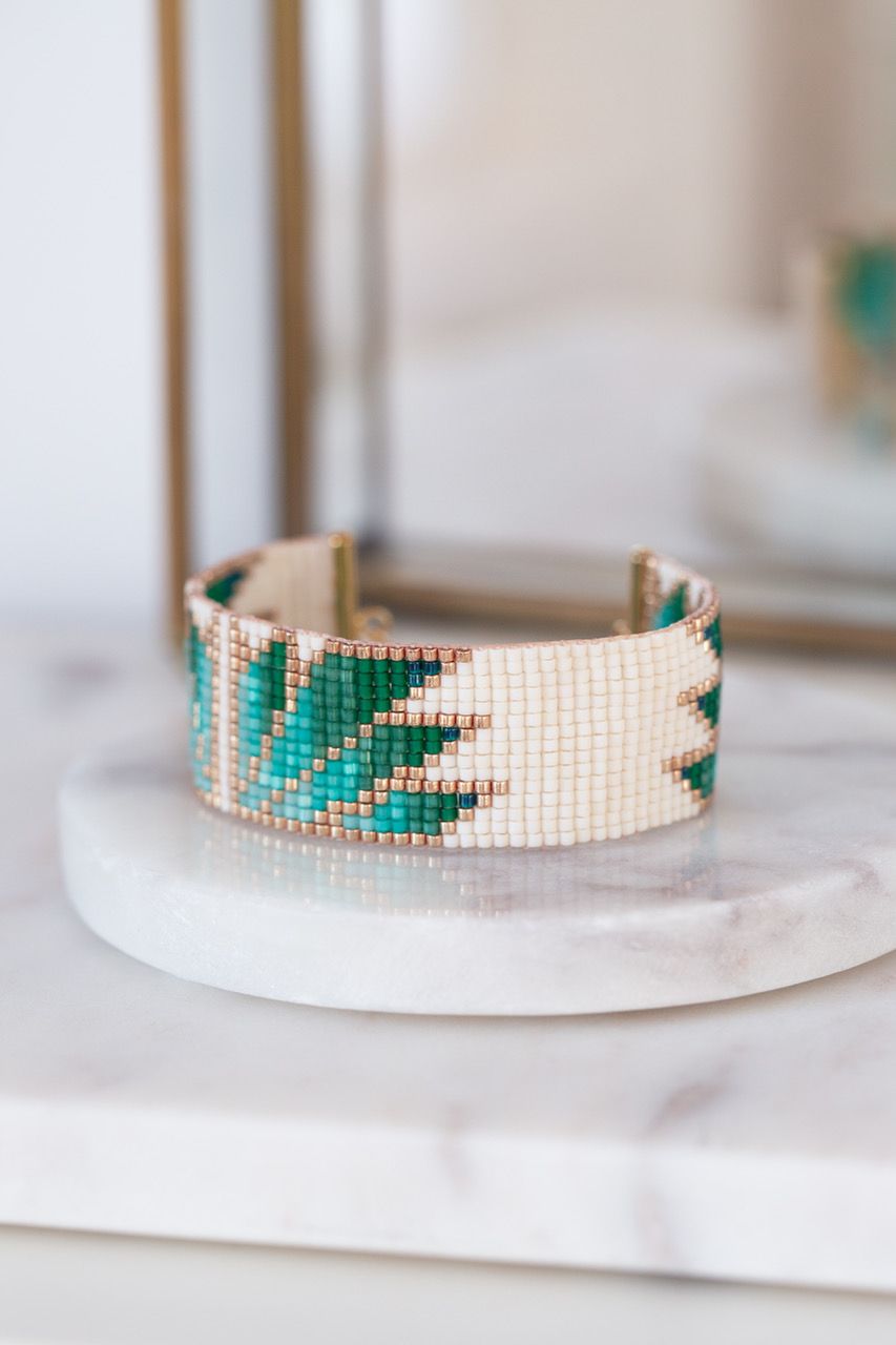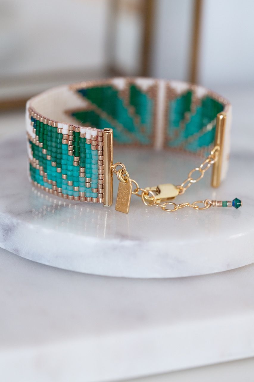 The Daisy Green bracelet is now available for you to download and reproduce at home on my Etsy shop: https://www.etsy.com/listing/1510862748/pattern-for-bead-weaving-on-a-loom?ref=listings_manager_table