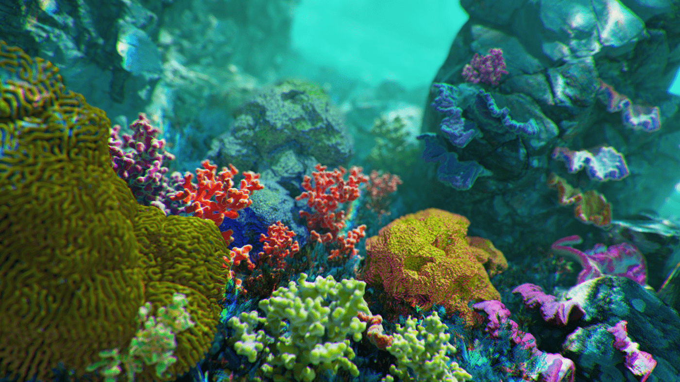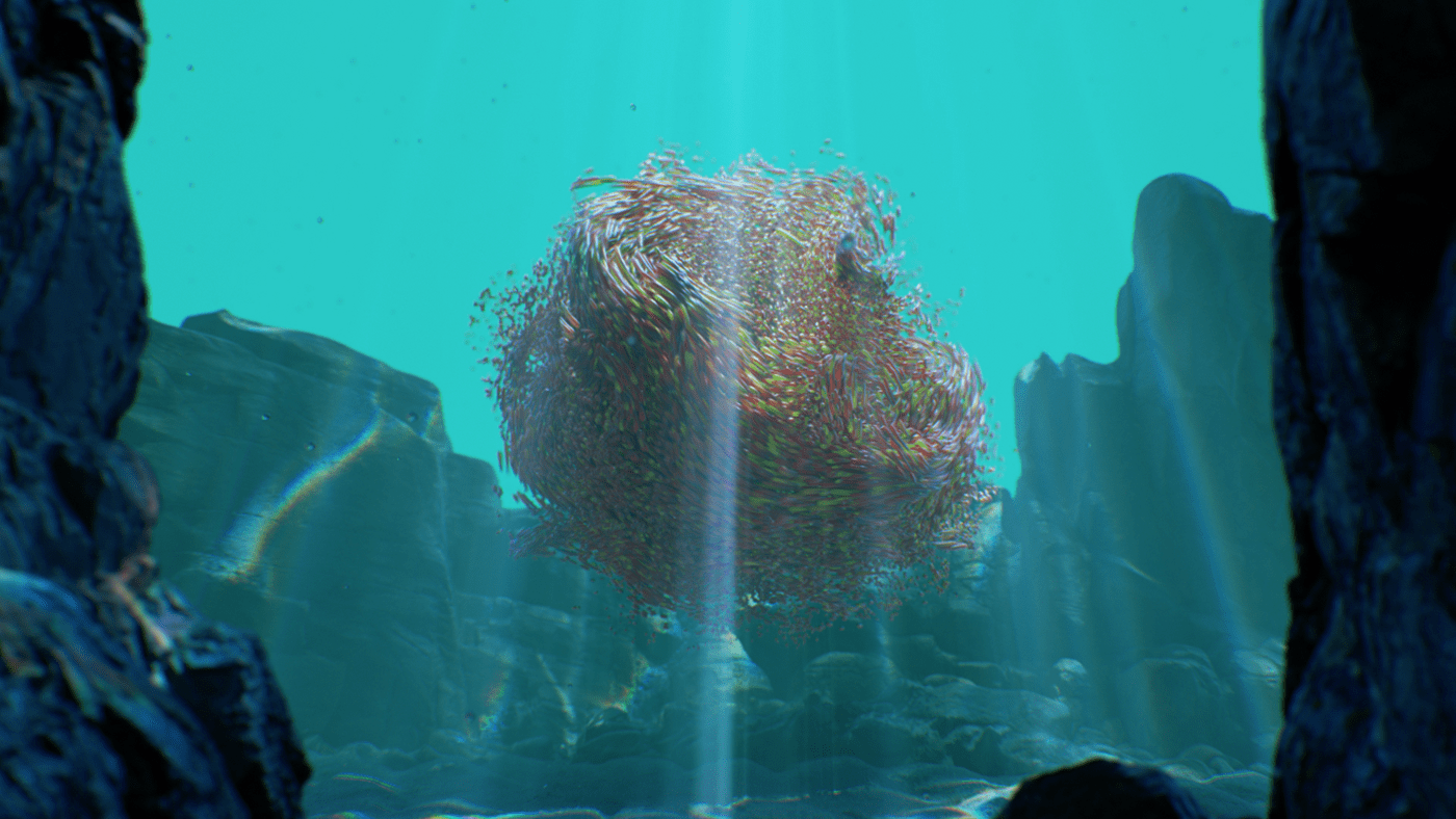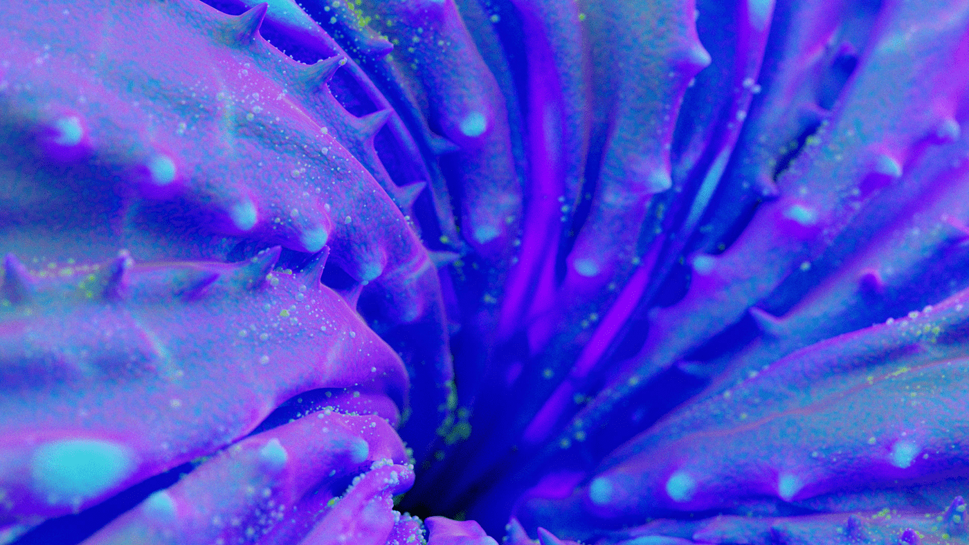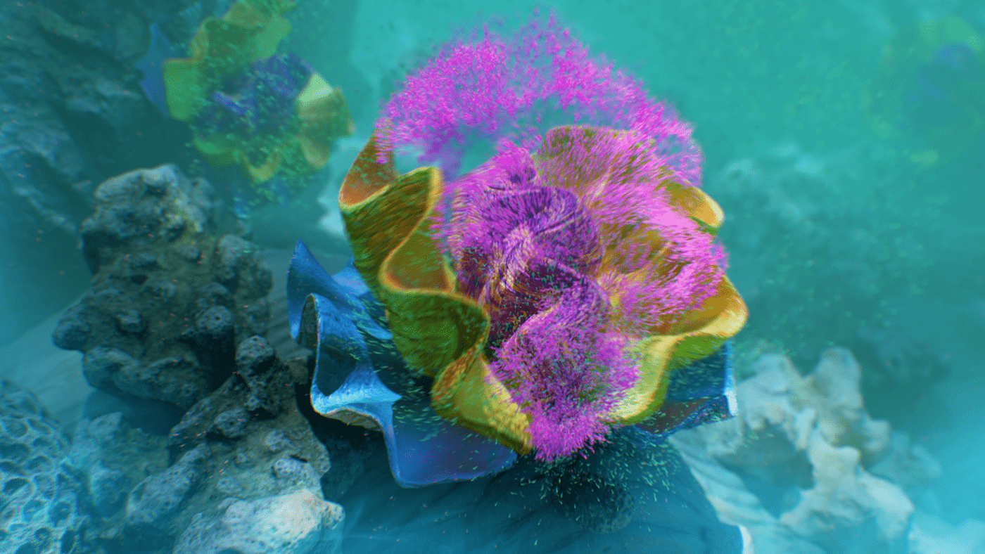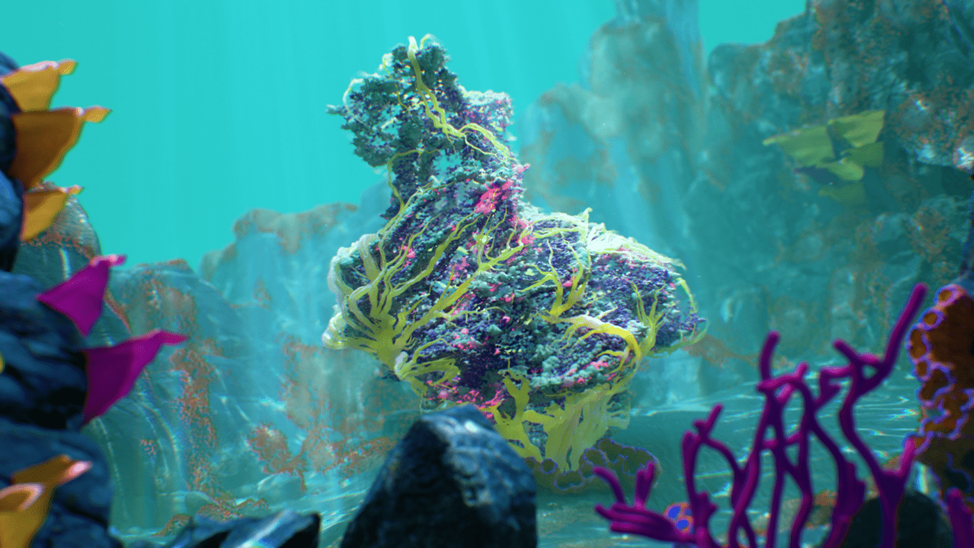 What do you say to a client that says "Pitch us an idea for a cool art piece and we'll fund it." You say yes! What at first seemed too good to be true, turned out to be one of the most fun projects I've worked on. I had been kicking around an idea in my head for a while. Like many of my ideas, Mitosis began with musical inspiration. I imagined a surreal undersea dreamscape that would evolve along with the music. The song begins with minimal instrumentation and gradually builds in complexity and intensity which conjures up images of a single-celled organism slowly evolving into a more complex being. I also love scuba diving and am fascinated by the strangeness of ocean life. This felt like the perfect setting for my idea, and an ideal playground to design something imaginative. I wanted to take what is already a surreal and abstract world and exaggerate it further to create something vibrant and captivating. The video begins with a single celled organism, and as the complexity of the audio track gradually increases over time, so too does the complexity, quantity, and movements of the organisms. Coral reefs begin to grow and spread, fish undulate, abstract sea plants wiggle and sway in the current and colorful thermal vents explode. The hues and caustic light shimmer as schools of fish swarm until finally it all culminates in one grandiose wide shot of the entire coral reef. The music as well, swells to a grand orchestral climax, accentuating the epic fantastical nature of Mitosis.