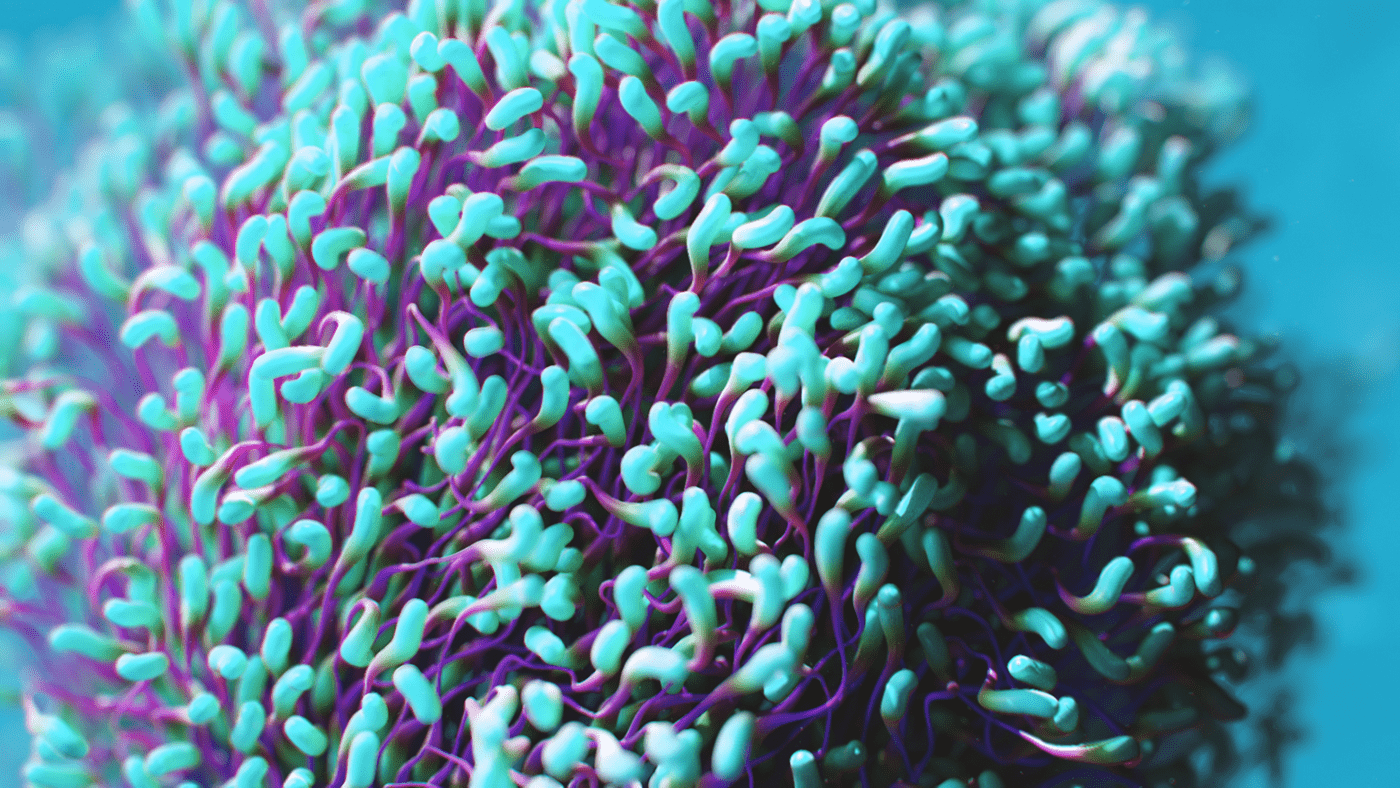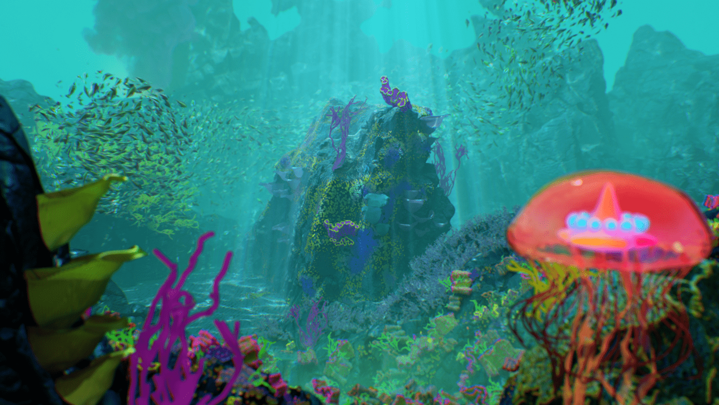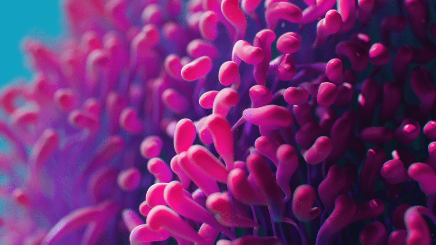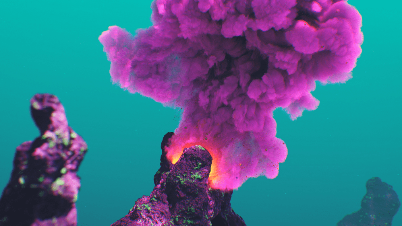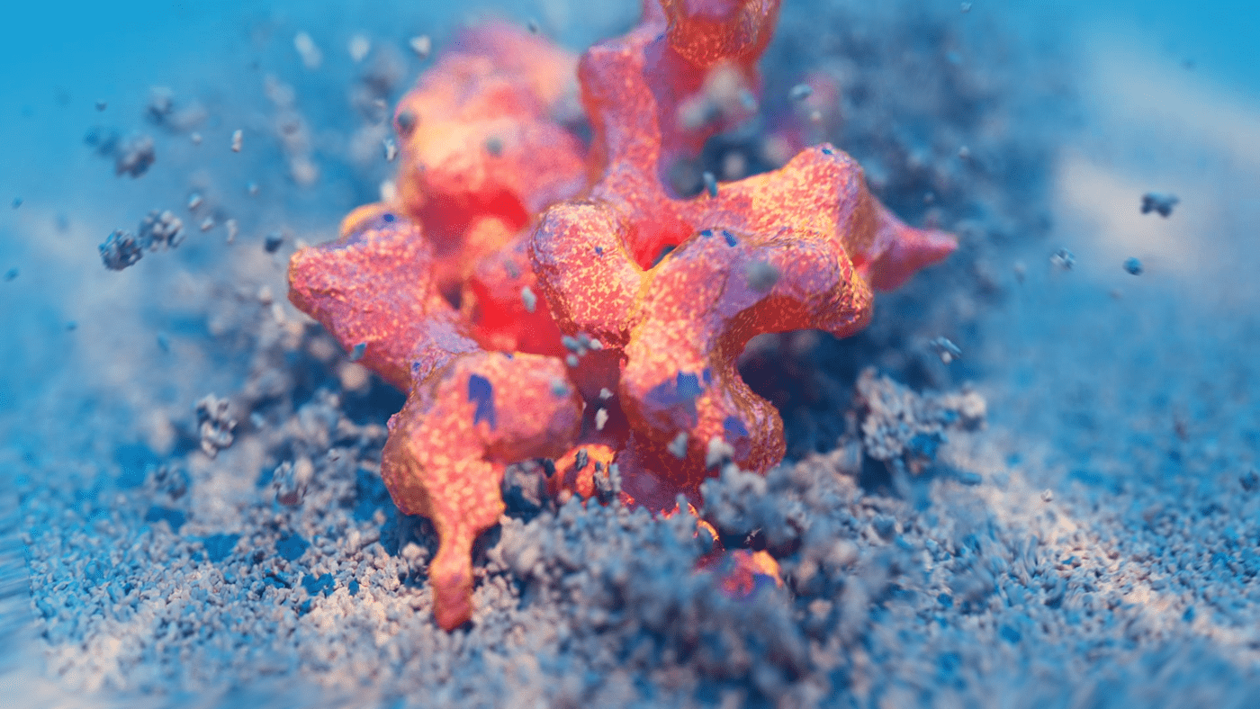 What do you say to a client that says "Pitch us an idea for a cool art piece and we'll fund it." You say yes! What at first seemed too good to be true, turned out to be one of the most fun projects I've worked on. I had been kicking around an idea in my head for a while. Like many of my ideas, Mitosis began with musical inspiration. I imagined a surreal undersea dreamscape that would evolve along with the music. The song begins with minimal instrumentation and gradually builds in complexity and intensity which conjures up images of a single-celled organism slowly evolving into a more complex being. I also love scuba diving and am fascinated by the strangeness of ocean life. This felt like the perfect setting for my idea, and an ideal playground to design something imaginative. I wanted to take what is already a surreal and abstract world and exaggerate it further to create something vibrant and captivating. The video begins with a single celled organism, and as the complexity of the audio track gradually increases over time, so too does the complexity, quantity, and movements of the organisms. Coral reefs begin to grow and spread, fish undulate, abstract sea plants wiggle and sway in the current and colorful thermal vents explode. The hues and caustic light shimmer as schools of fish swarm until finally it all culminates in one grandiose wide shot of the entire coral reef. The music as well, swells to a grand orchestral climax, accentuating the epic fantastical nature of Mitosis.