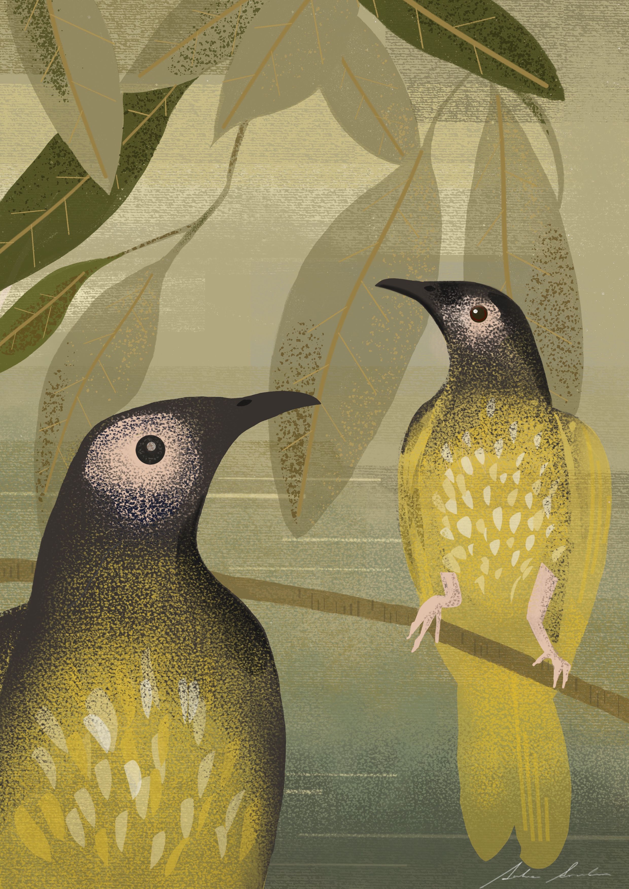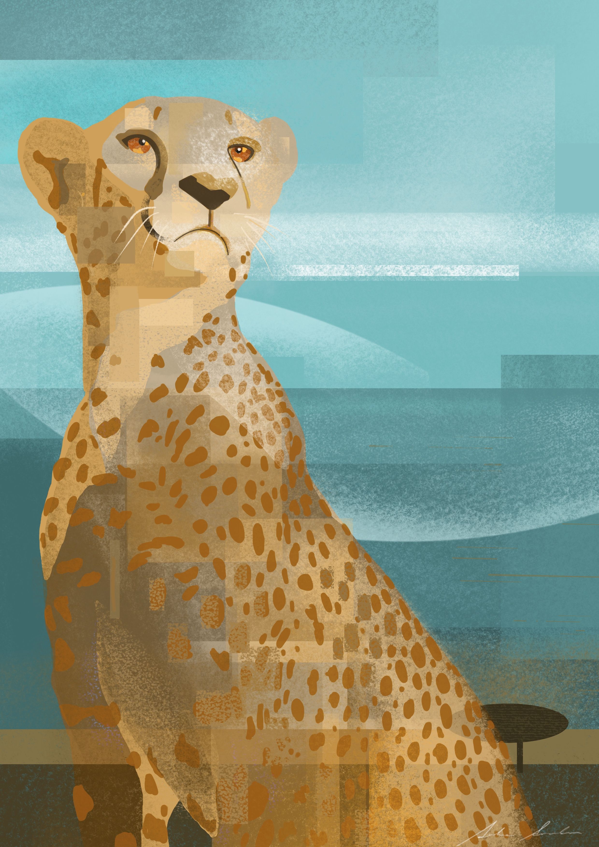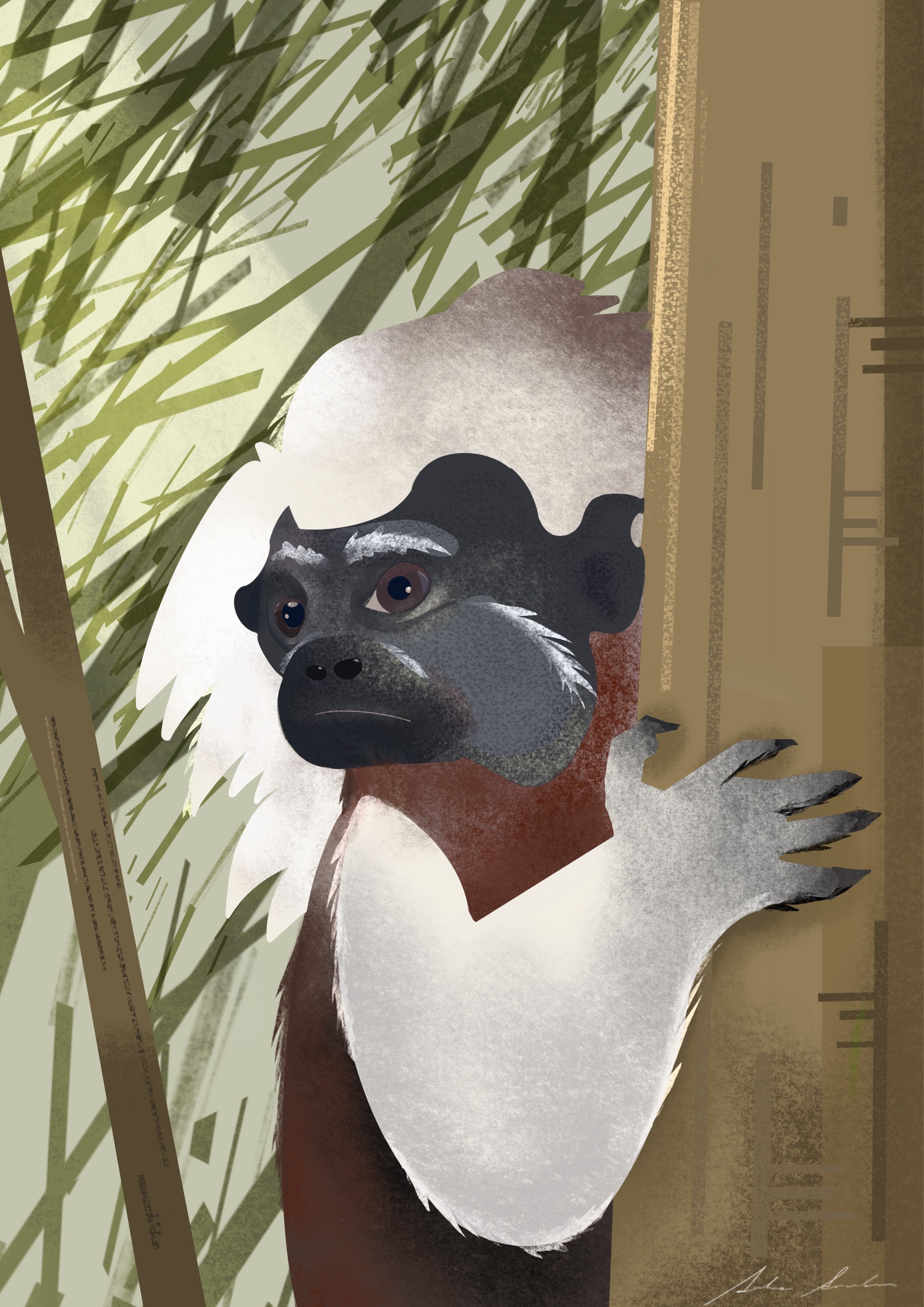 Empecé estudiando algunos animales como referencia visual y trabajé la composición probando diferentes miniaturas. Para poder mantener un estilo consistente en todas las imágenes utilice una paleta de colores en común, finalmente termine con el color y las texturas.