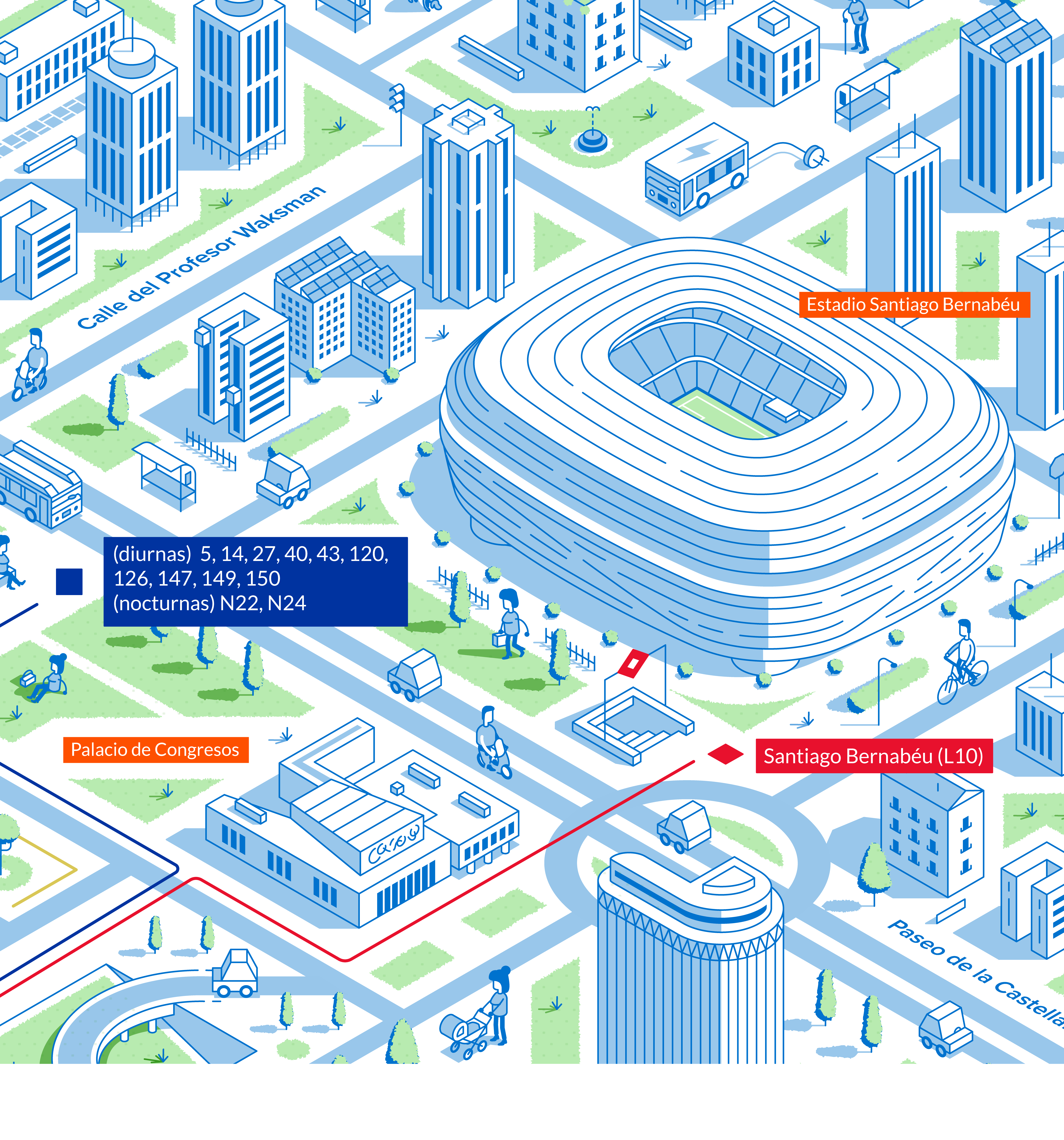 Proyecto de infografía e ilustración encargado por EMT Madrid (Empresa Municipal de Transportes).