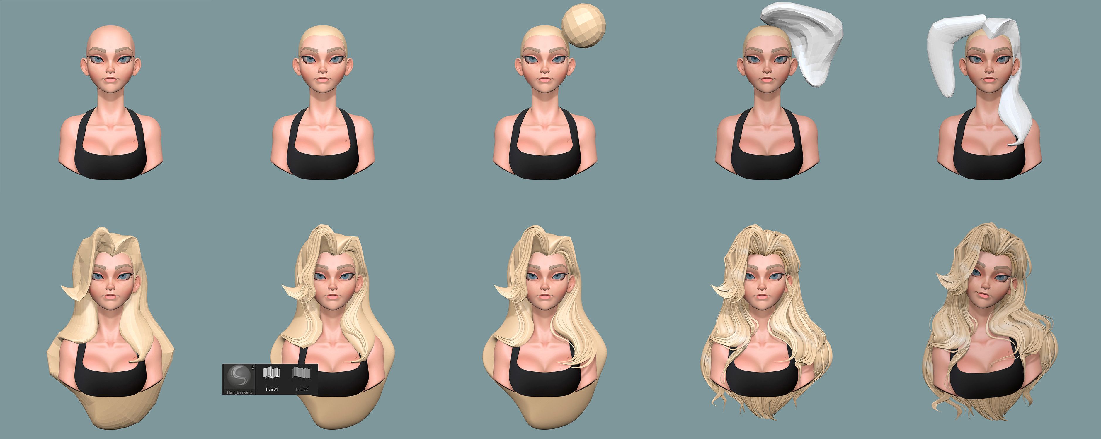 Hello everyone! I'm sharing some work I did in my spare time. At first, I wanted to do a breakdown of how I organize the creation of hair with Zbrush since many artists wrote to me to learn some tricks of my process.