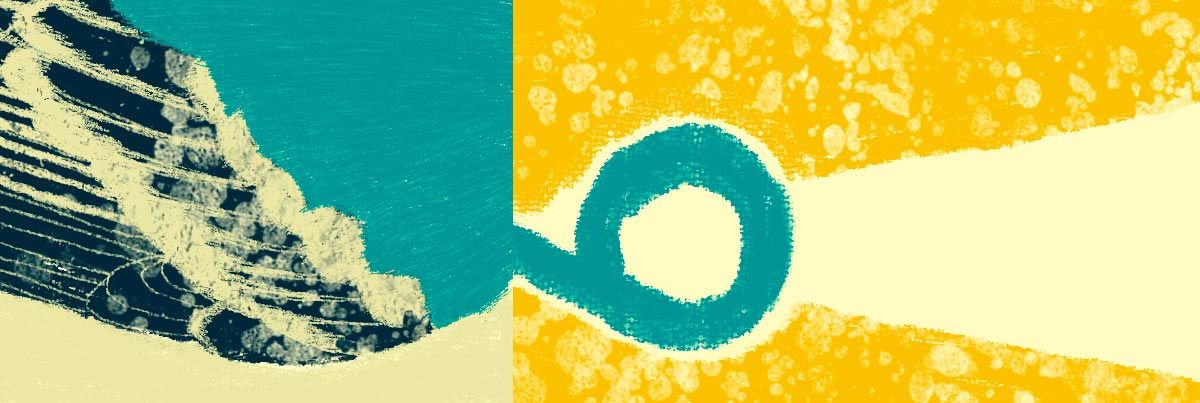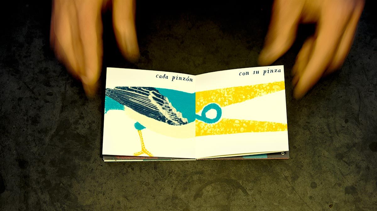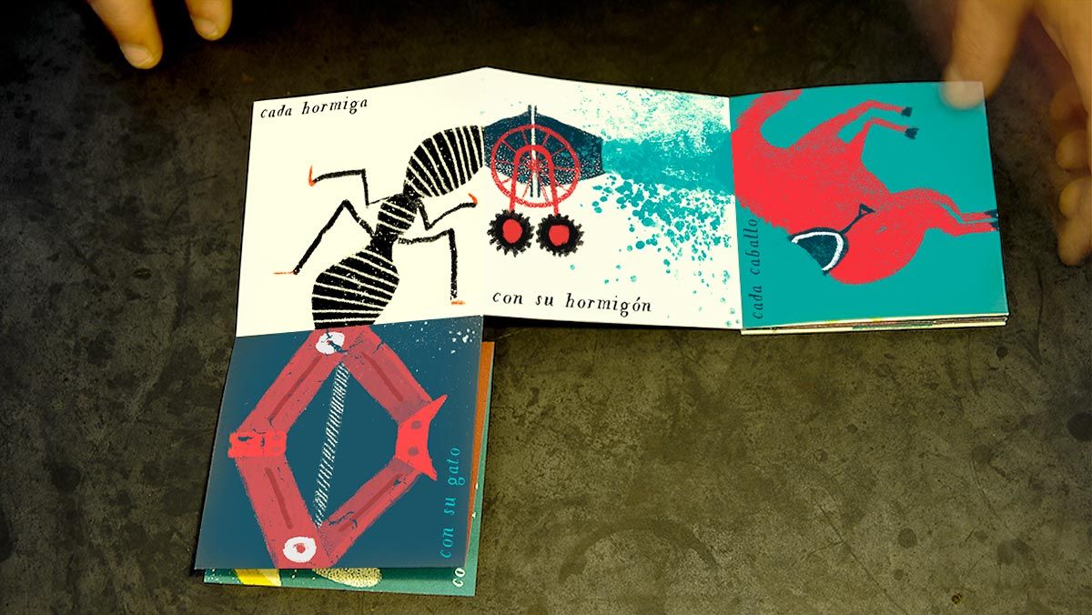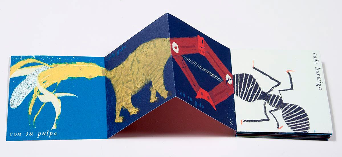 En cada pliegue, van surgiendo animales emparejados que se enlazan en espiral, formando un vertiginoso cadáver exquisito.