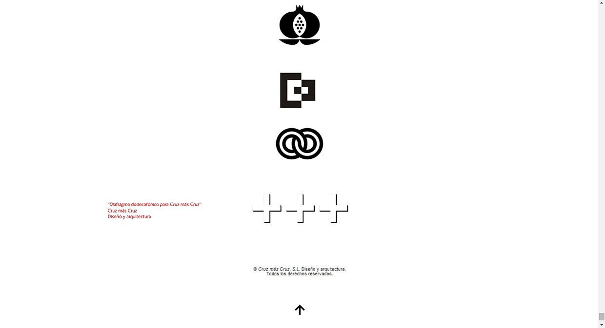 Cruz más Cruz es el nombre de nuestro propio estudio de diseño y arquitectura, y en su identidad visual sacamos partido de la coincidencia simbólica entre las palabras "Cruz" y "más". Utilizamos 12 colores corporativos (los del "Diafragma dodecafónico" de Cruz Novillo), de forma que podemos combinar la papelería corporativa (sobre, DinA4 y tarjeta) de miles de maneras distintas.