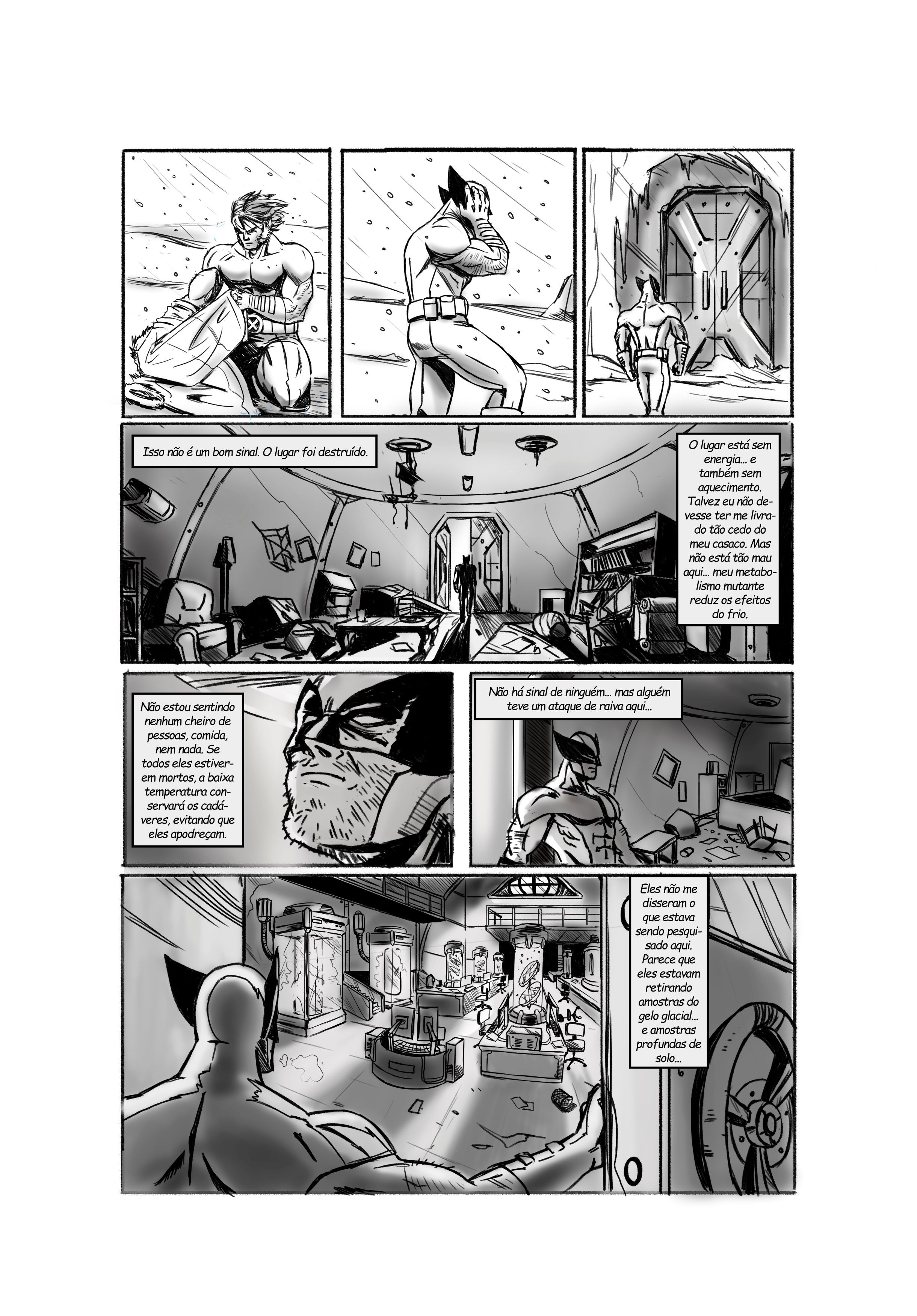Hola Guilherme. Es curioso ver este guión usado aquí porque dibujé estas páginas exactas para mi primera prueba en Marvel, ¡antes de que me inscribieran! Claramente estás en el buen camino, es más que nada una cuestión de perfeccionar las cosas. Sigue trabajando en tu anatomía, tu perspectiva, tu narración y las cosas seguirán mejorando. ¡Avanza!