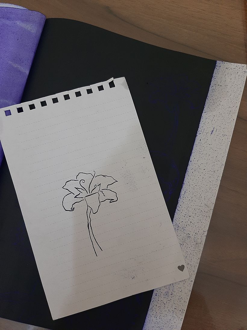 en este proyecto realice un diseño diferente utilizando la tecnica de dibujo a lapiz, dibuje la flor de rapuncel y realice lineas, sombreado y relleno...