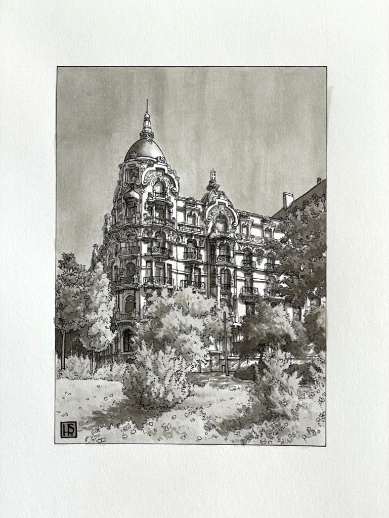 Here's the final drawing once all the darker washes were added in. I really enjoyed painting in all the shadows on this one! There were so many little details that it was sometimes hard to keep track of them all, but that's part of the fun, and I really enjoyed making this piece.