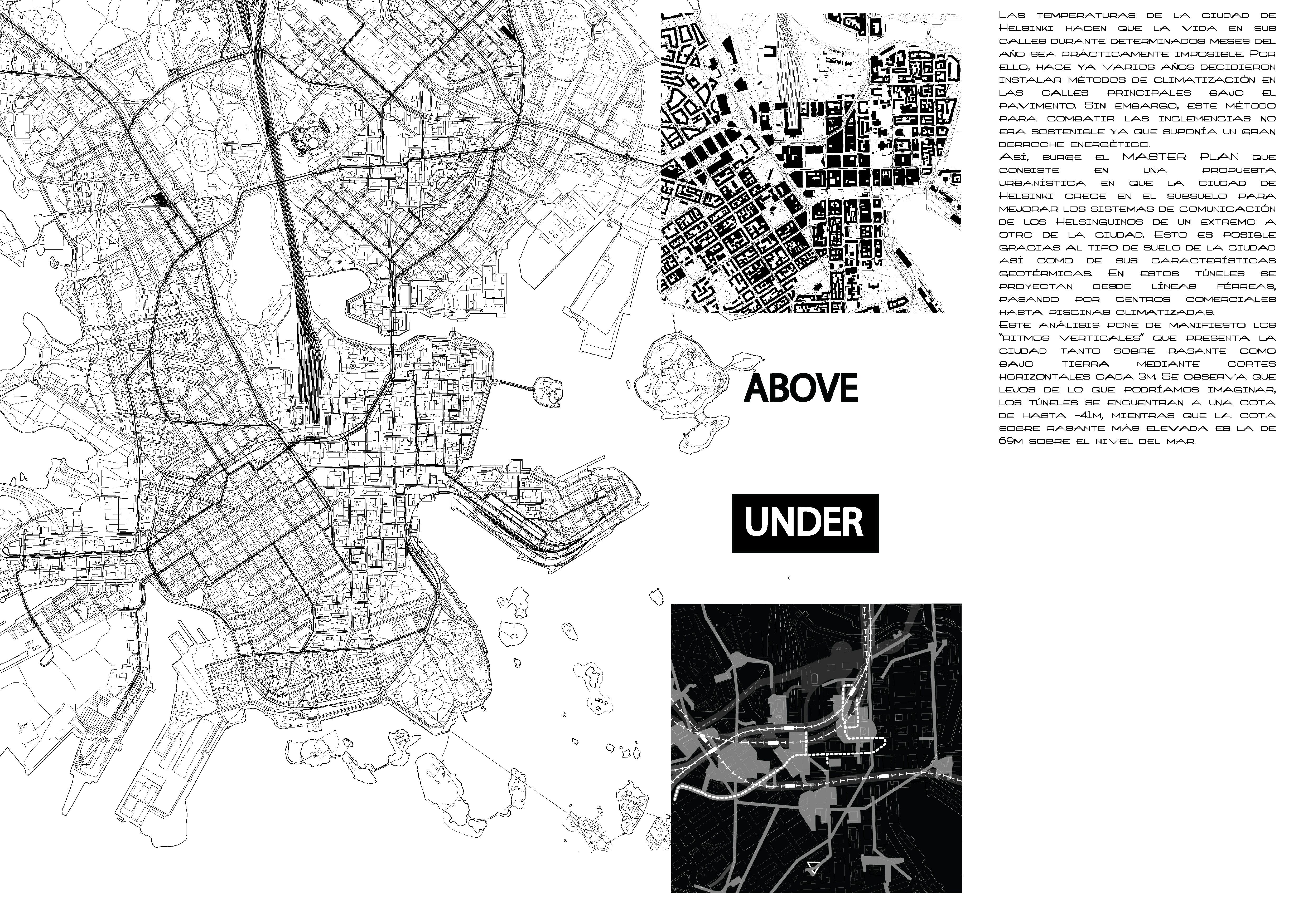 Ritmos Verticales is an analysis of the existing heights in an area comprising the centre of the city of Helsinki, Finland. Using a series of cuts made every three metres; the result is a plan of the buildings that reach that level of section. By this method we obtain a score of the city, giving the ability to use it as a reference for future designs.