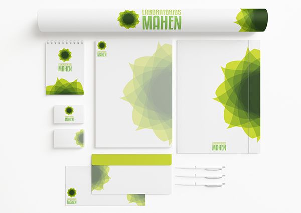 Propuesta de logotipo realizada a los laboratorios Mahen. Se trata de una empresa comprometida con la medicina natural. Se decide utilizar los colores verdes y hacer referencia en el logotipo (símbolo) a los productos naturales utilizados en la fabricación de sus medicamentos.