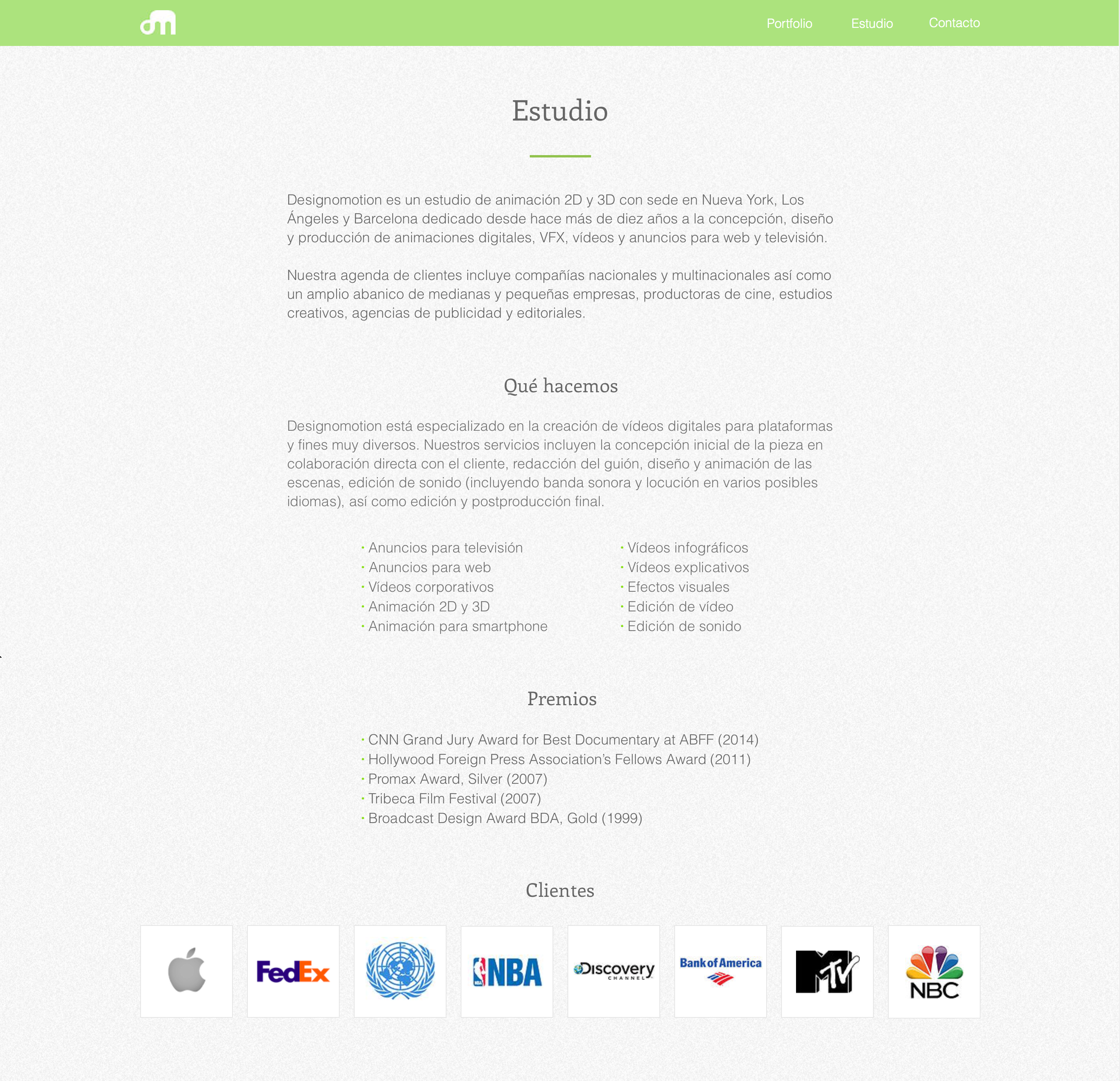 Designomotion es un estudio de animación 2D y 3D con sede en Nueva York, Los Ángeles y Barcelona dedicado desde hace más de diez años a la concepción, diseño y producción de animaciones digitales, VFX, vídeos y anuncios para web y televisión.