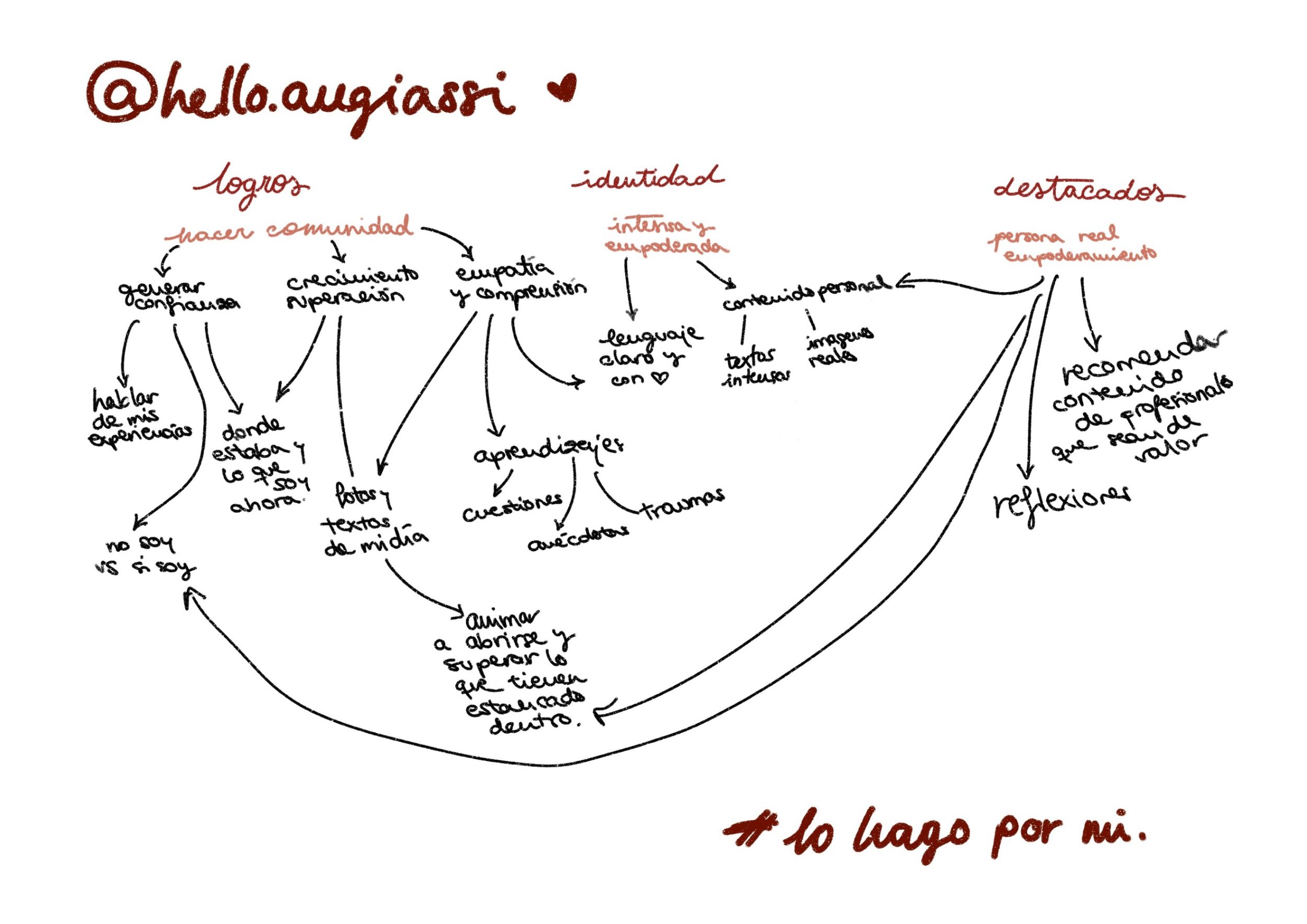 Ya os he mostrado un poquito de mi contenido, no quiero que os olvidéis que esto es una especie de “marca personal” y que soy diseñadora, y a veces también ilustradora, así que vamos a ver lo que se me ocurrió para este proyecto, que es un simple mapa de contenido porque, para empezar, estaba dudosa de la interacción que iba a tener y qué iba a pasar con mi perfil personal.