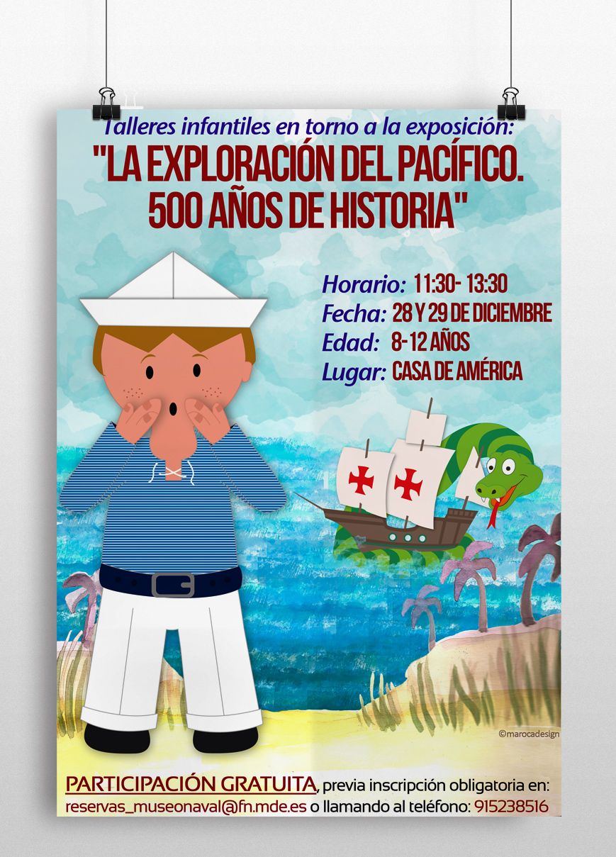 Ilustraciones talleres infantiles de exposición "La exploración del Pacífico. 500 años de historia"