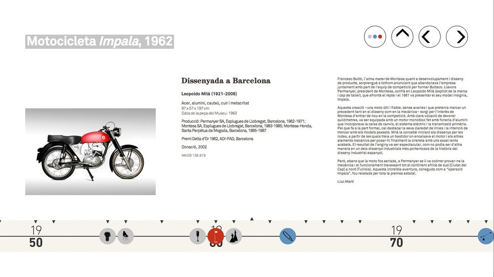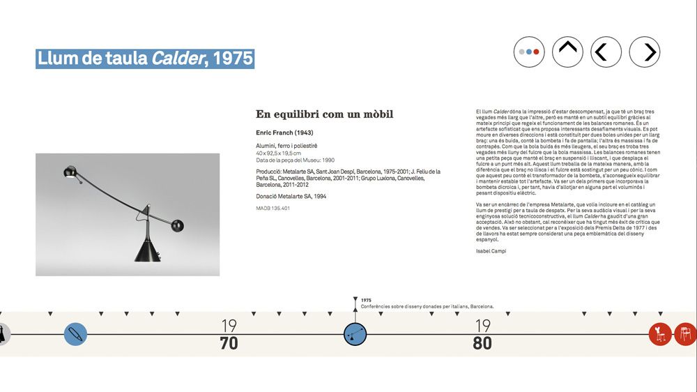 [ Client: Espiral d’Acer, per al Museu del Disseny de Barcelona. Direcció d’art i realització: Espiral d’Acer. Disseny gràfic i usabilitat: David Lasheras. Programació: Aitor Mauleón. ]