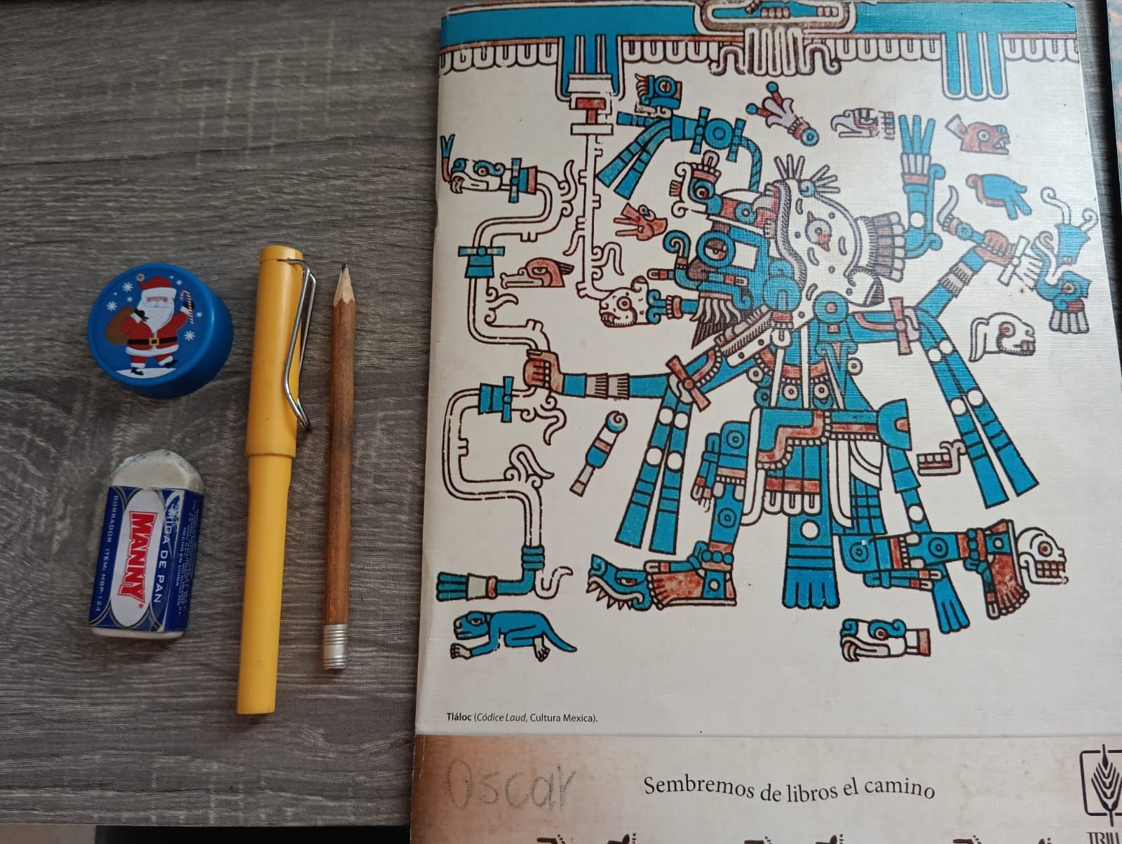 Use una libreta sencilla, lapiz y goma, sacapuntas, y un lapiz que tiene una goma adentro, para así crear mis bocetos, objetos y escenarios.
