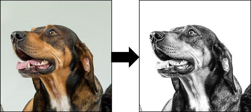 Adicionalmente, necesitaremos una buena foto de tu mascota en escala de grises (Figura 2). Para esto, puedes utilizar cualquier programa de edición de fotos (en mi caso utilicé la aplicación de libre uso Snapseed en mi celular)