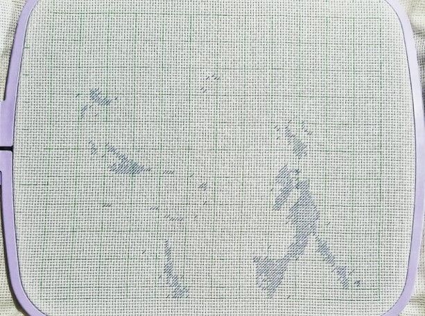 Una vez que has terminado de bordar todos los colores, desmonta tu tejido del tambor y pasa una plancha o secador de cabello por encima para borrar la tinta del bolígrafo que usamos para hacer la cuadrícula y marcar los puntos. Y listo! Borda de manera realista a partir de una imagen (Figura 8).