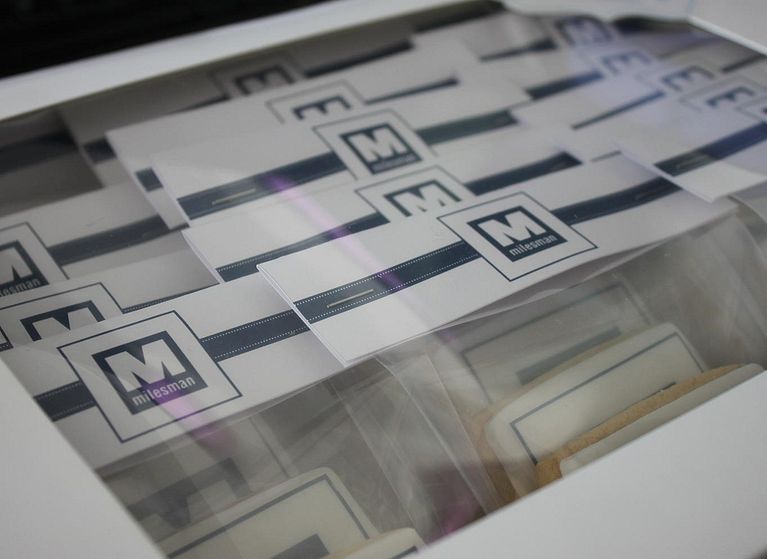Decoración de galletas personalizadas con la imagen de marca Milesman, compañía con presencia en más de 30 países, que lleva a cabo labores de investigación y fabricación de equipos médicos de alta tecnología láser.