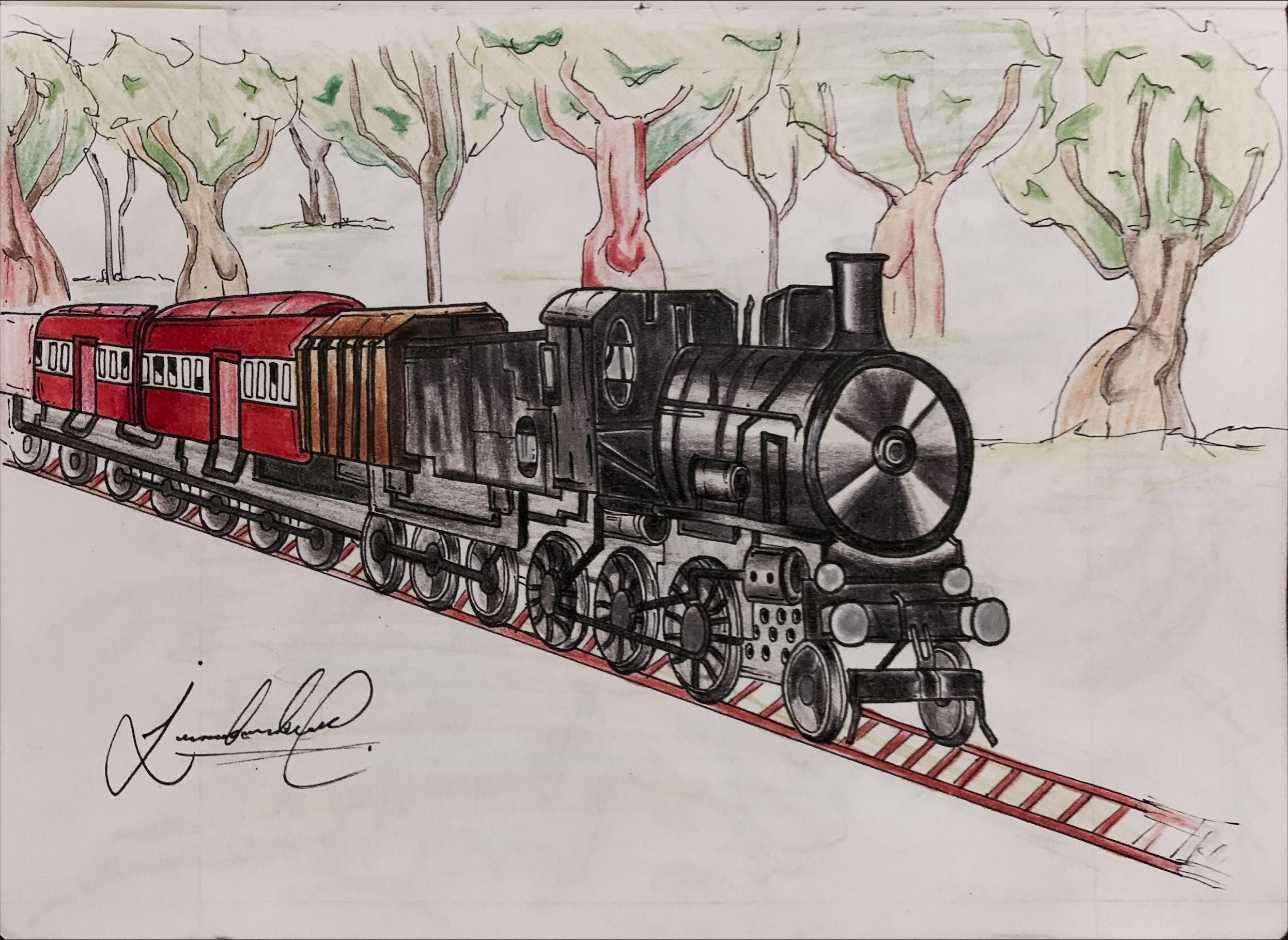Culmine mi practica con el dibujo de un tren que contaba con un efecto de profundidad y algo de color.