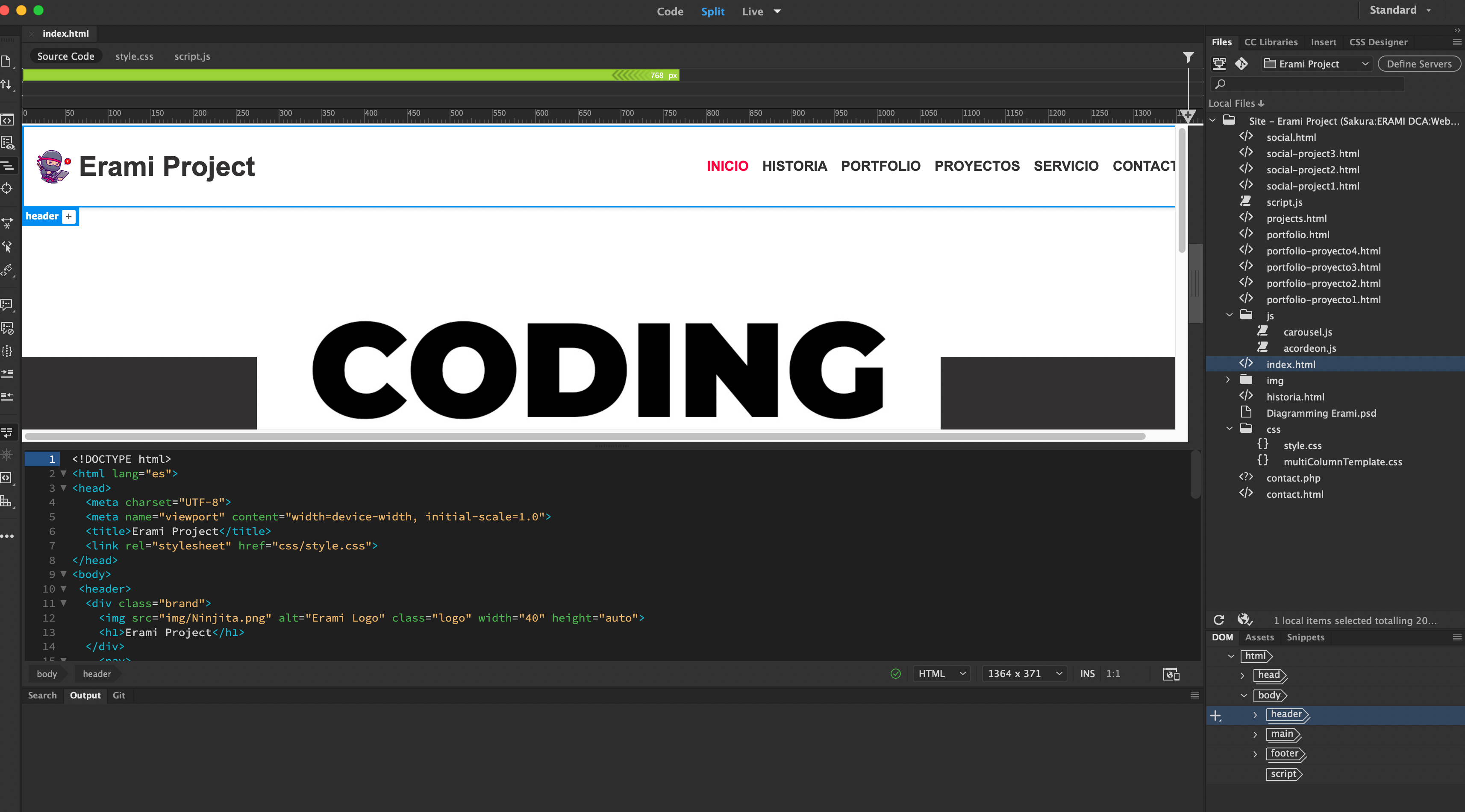 1. Planeación de estructura: definí un menú principal con las secciones: Inicio, Historia, Portfolio, Proyectos, Servicio y Contacto.