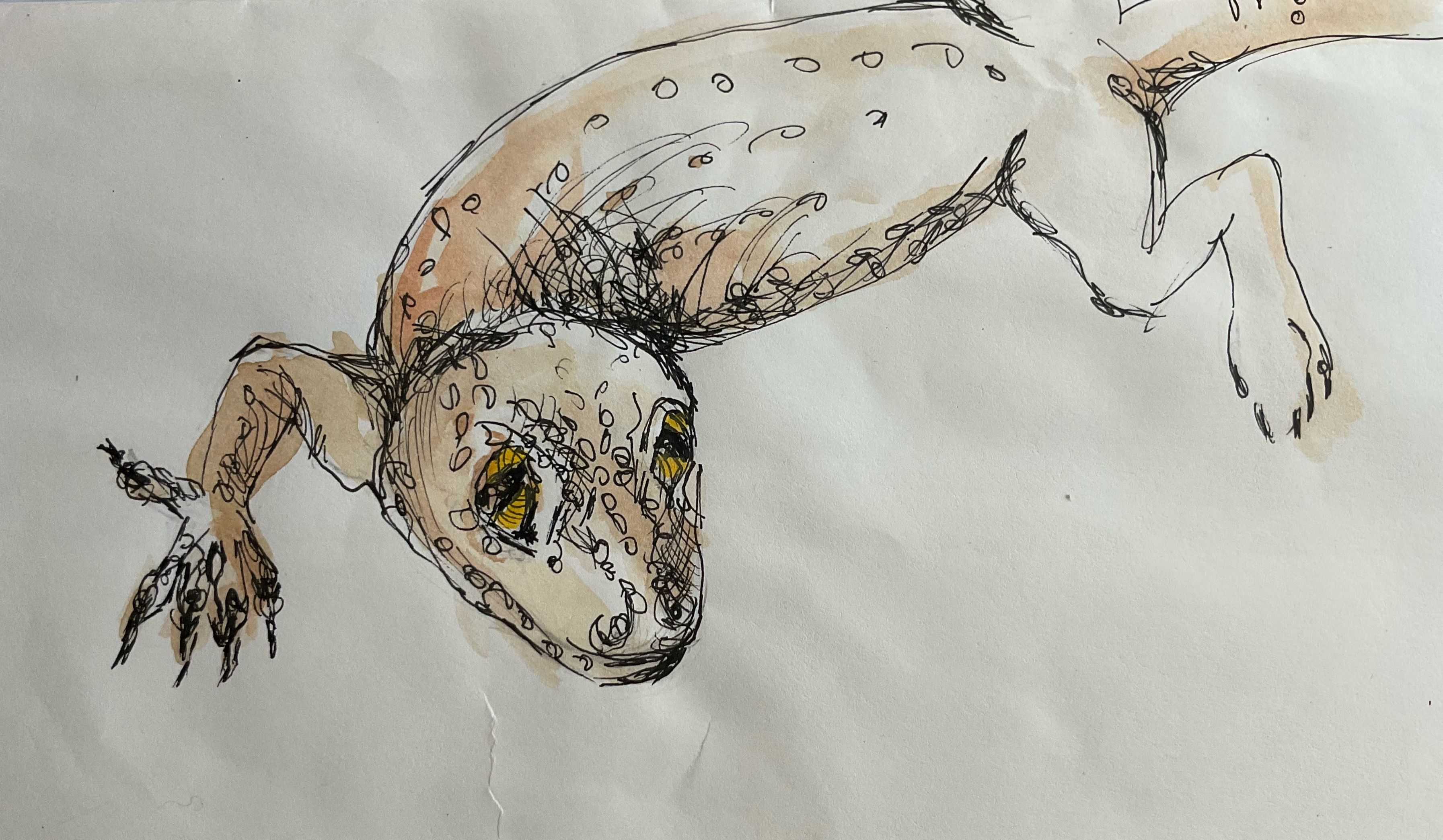 Ich habe Fineliner und Aquarellfarben benutzt.