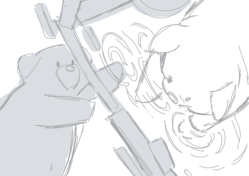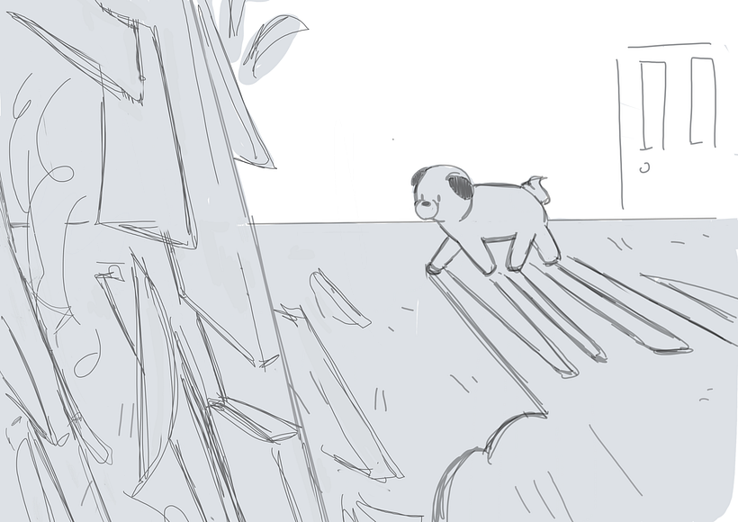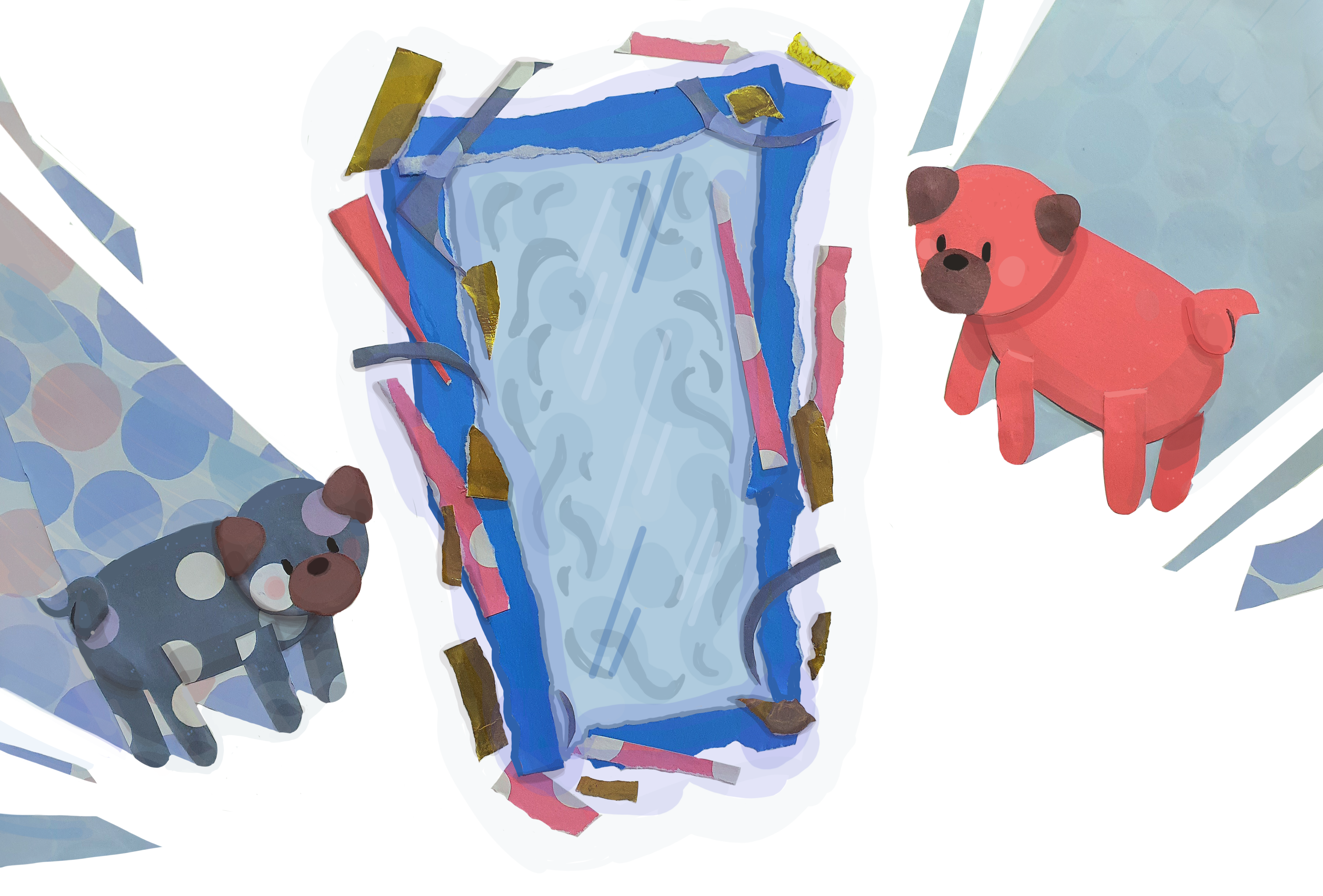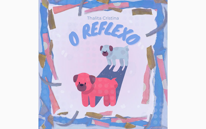 Esse livro foi criado pensando nas minhas duas sobrinhas pets. A ideia seria uma pug brincando com o próprio reflexo dela, cujo relfexo é na verdade é outra pug presa no espelho. Elas viram amigas e brincam muito.