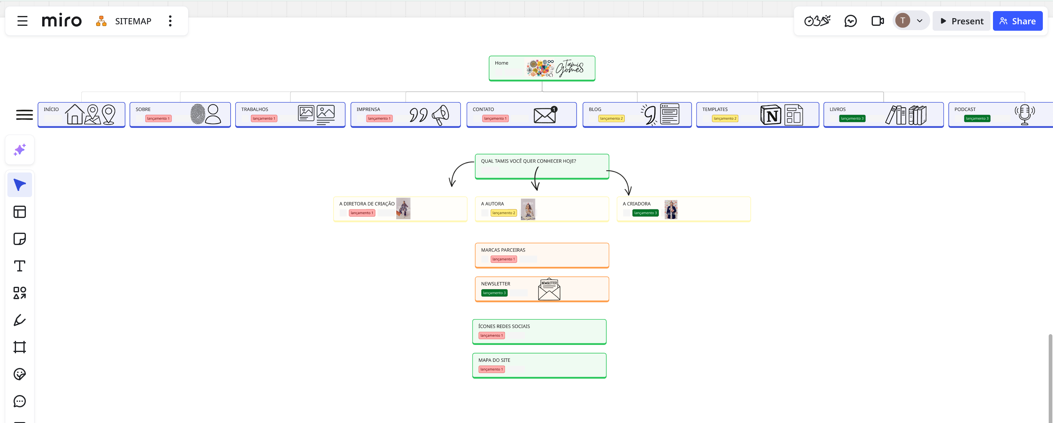 Then, I created the website structure on Miro