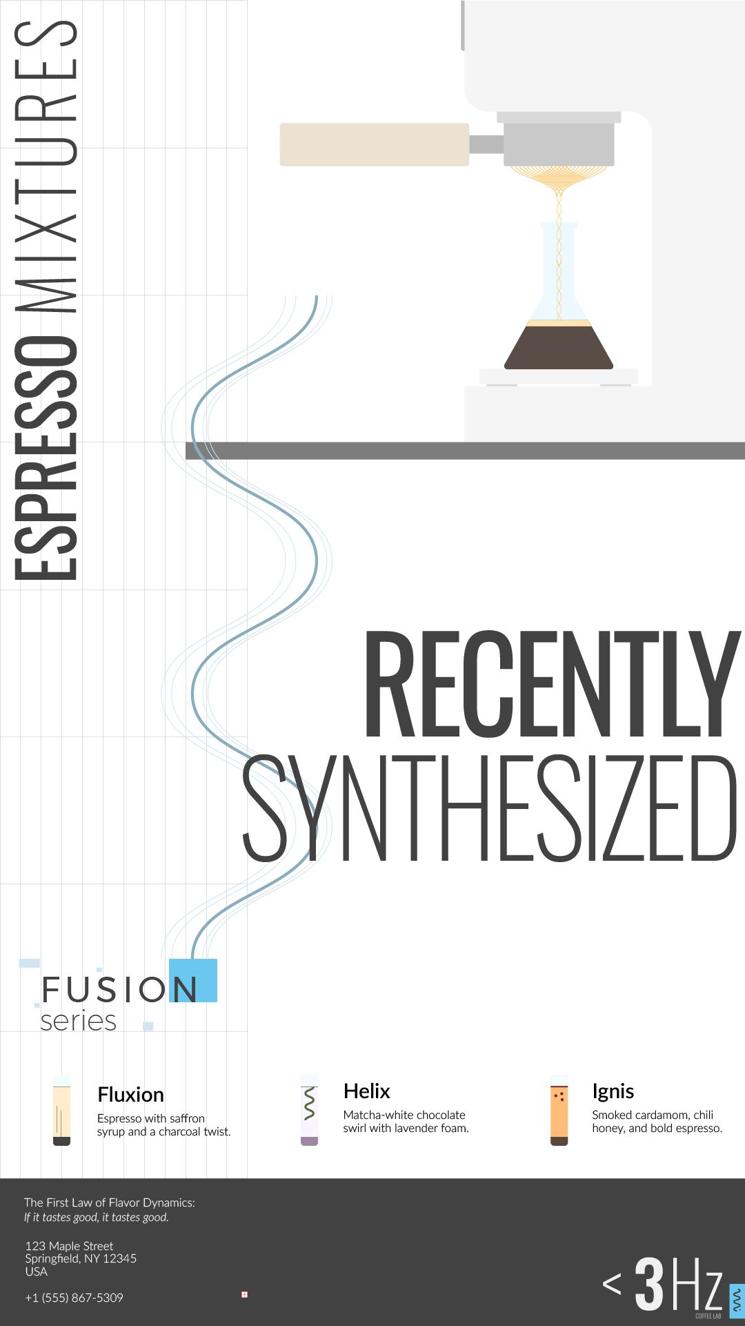 To set the aesthetic direction, I designed the logo around the idea of <3 Hz—less than three wave cycles—using two full circles and one partial cycle as the core symbol. Since the deliverable was a square Instagram post intended as a profile picture, I added a grid to reinforce the scientific and experimental concept while framing the design for the format. The color palette combined warm and cold tones, tying together the science theme of energy with the coffee theme of hot and cold beverages. The colors were kept strong enough to grab attention yet calm enough to feel clean and professional, setting the tone for the rest of the project.