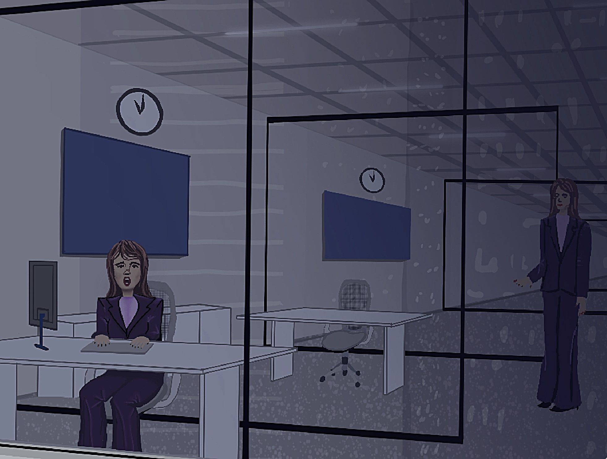 Era tarde. La oficina estaba vacía. Yo no lograba finalizar y una lámpara parpadeaba cuando sentí una presencia oscura asechándome. La vi de soslayo reflejada en la ventana. Se acercaba.