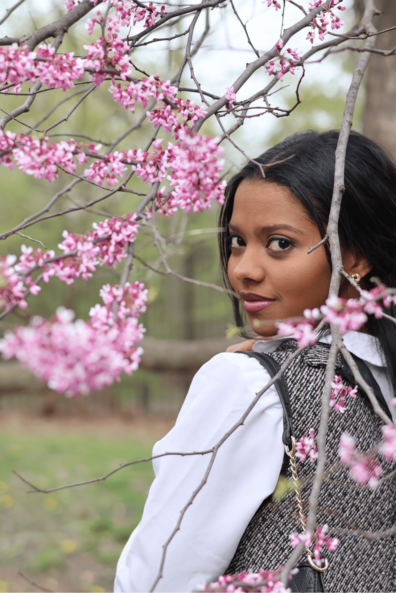 Escogí un parque con árboles florecidos y una calle con luces cálidas para tener dos ambientes diferentes: