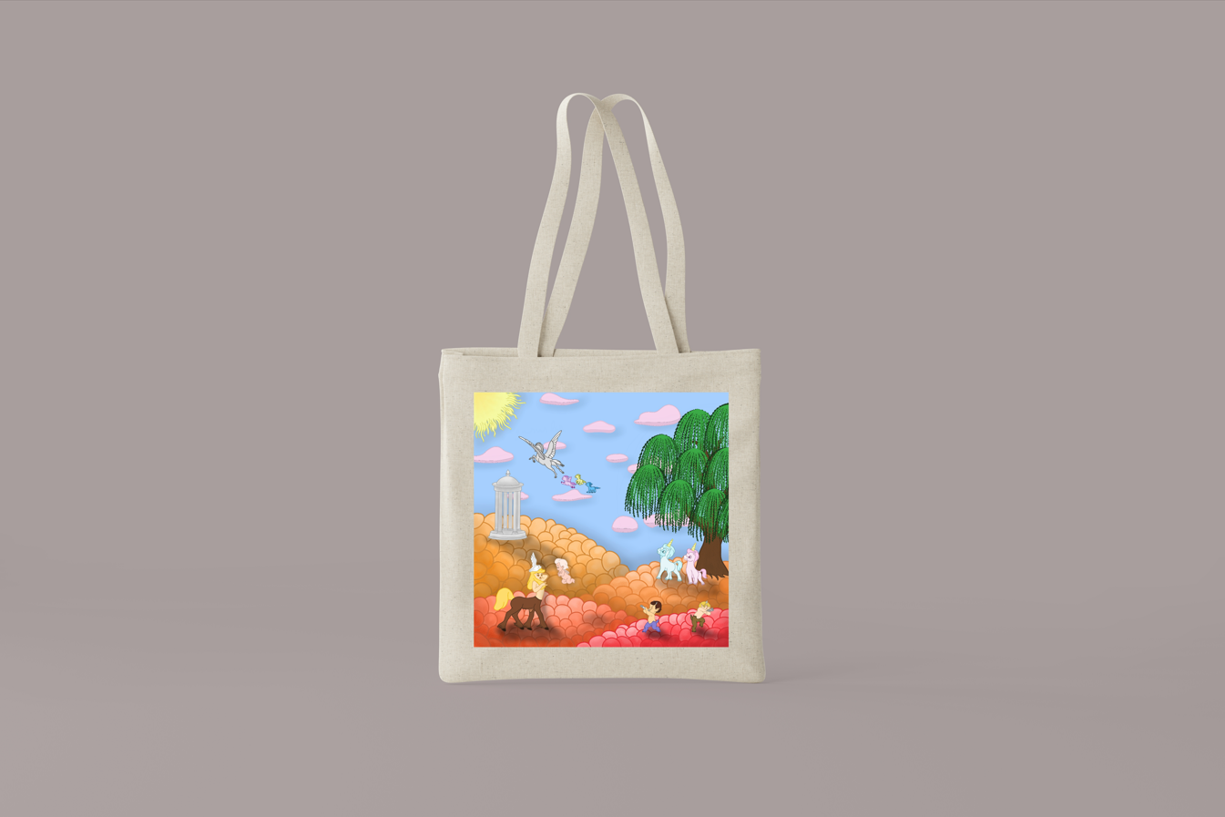 I created 4 tote bag designs Inspired from the movie called Fantasia (1940). The movie was made by Disney productions, and the concept of the movie is creating animations inspired from classical musics.