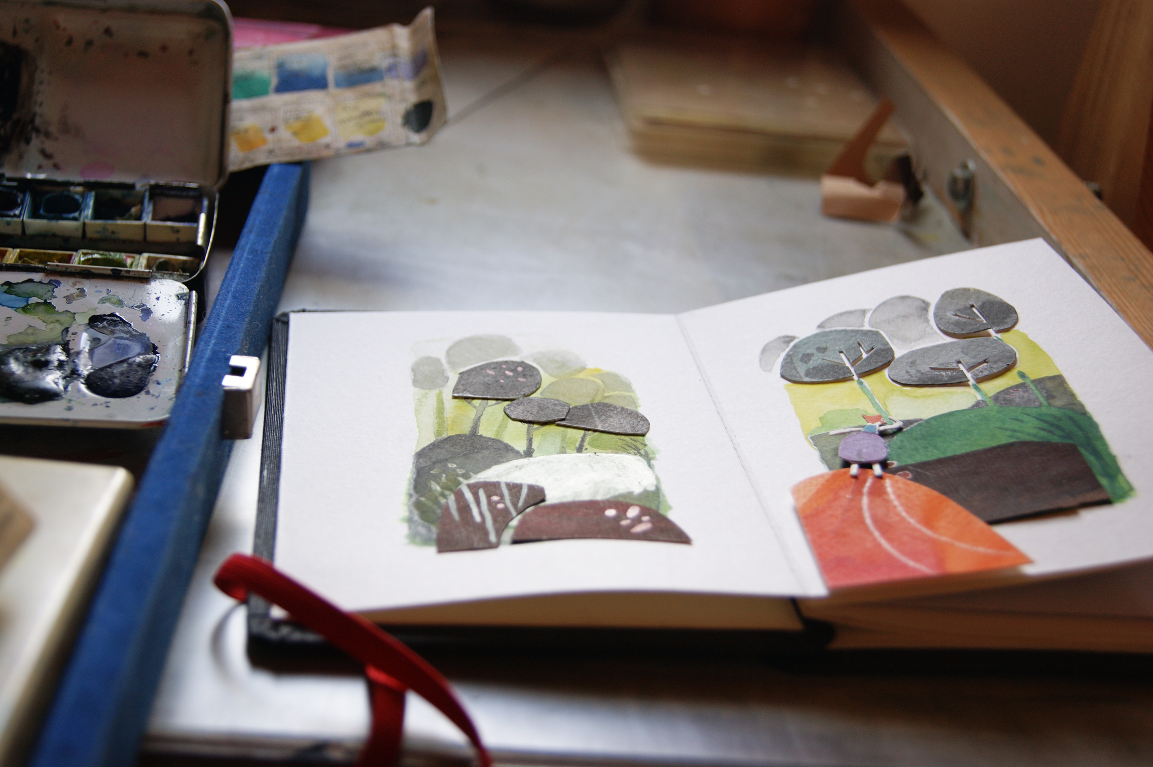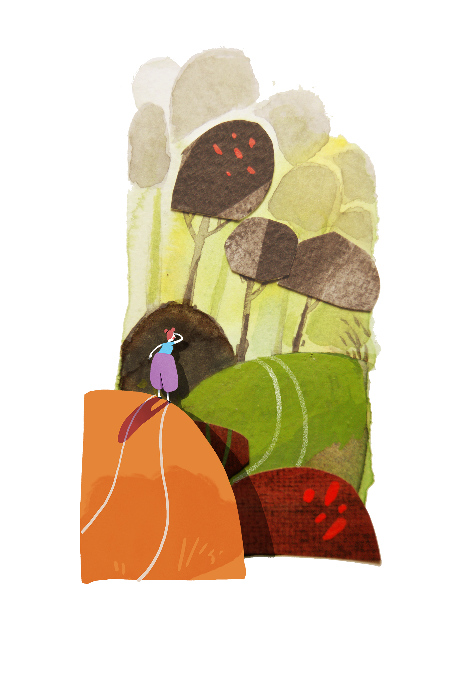 La mayor parte del tiempo trabajo digitalmente, ilustrando con Illustrator o Photohop, asique, desarrollar proyectos más personales, volviendo a las técnicas tradicionales, en este caso sobre todo la acuarela, pero también el collage ( y, si, al final también un toque con Photoshop :)) es para mi un respiro que disfruto mucho, este es el resultado de uno de esos momentos de vuelta a lo "analógico".