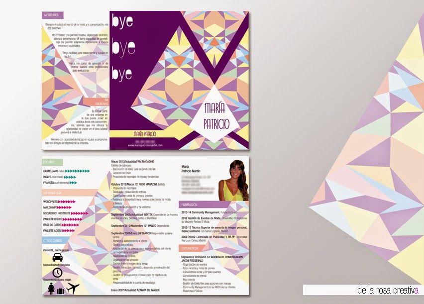 Os presentamos el curriculum que hemos diseñado para María Patricio una chica vinculada al mundo de la moda y la comunicación.