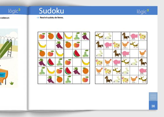 Continuación de la colección Raonament Lògic, con dos cuadernos más ilustrados de actividades de refuerzo, dirigido a alumnos de educación de ciclo medio de primaria.