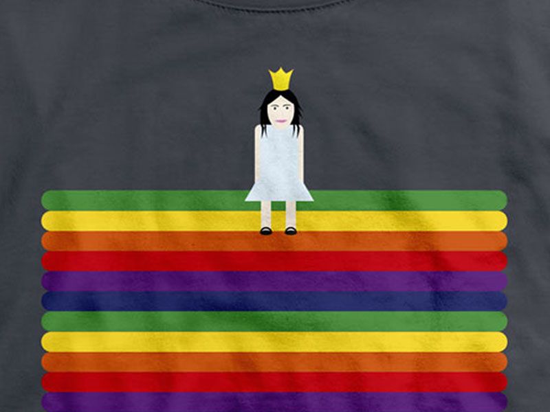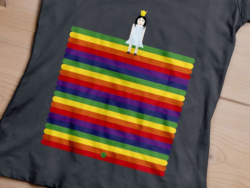 Ilustración hecha para una camiseta por delante y por detrás representando el cuento de "La princesa del guisante"