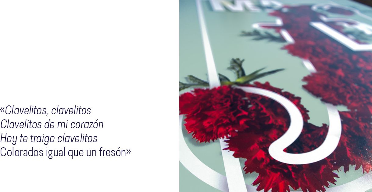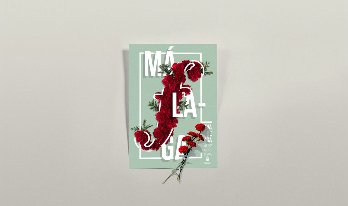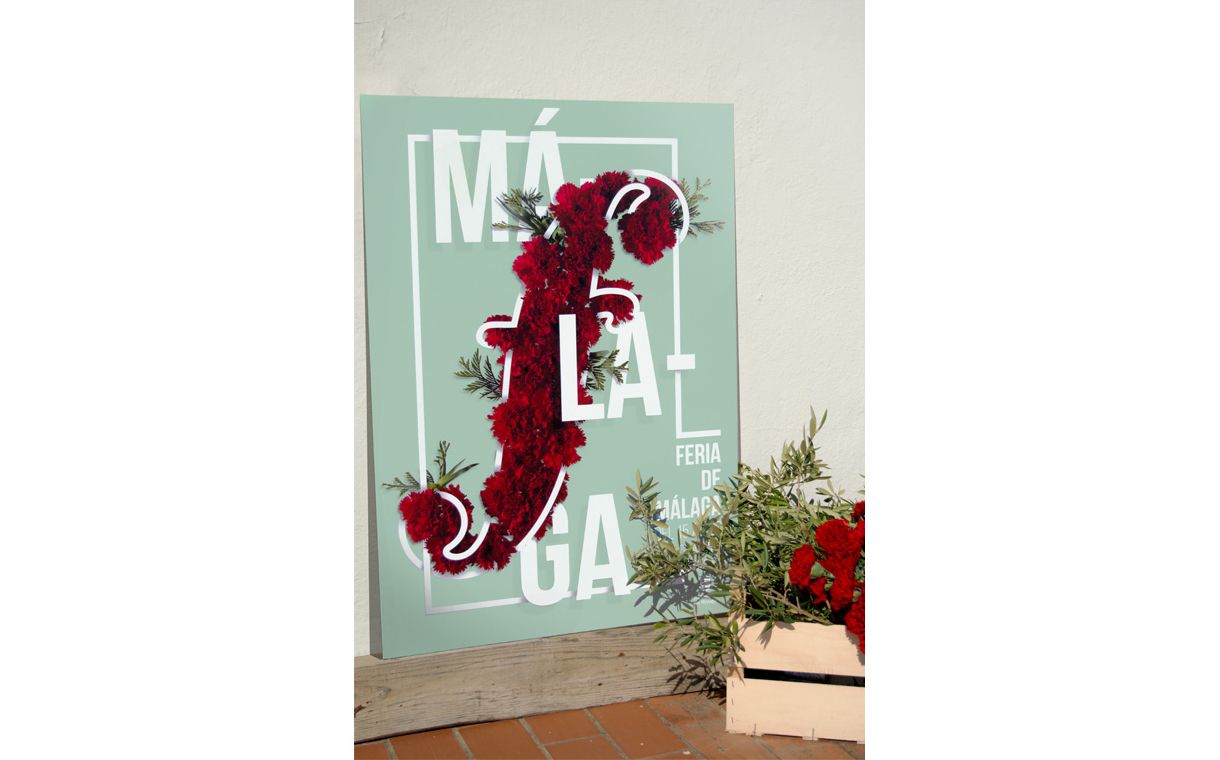 La característica de este cartel es la buscar una nueva forma que evoque el concepto y sea algo diferente. Mediante un elemento cotidiano, se ha dado forma a una «F» tipográfica muy elegante. Se ha escogido la «F» de feria. La elección de los claveles, es una forma de representar a la figura de la flamenca, con el color del rojo vivo característico.
