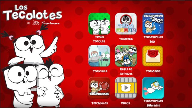 Aplicación para la cadena de restaurantes Sanborn protagonizado por los tecolotes icónicos de la marca y que incluye mini juegos y aplicaciones diversas. Entre los módulos que se incluyen en la app, está un visor de los video del canal de youtube de los tecolotes. El juego de Tecoholmes, en el que tienes que buscar en el fondo del mar objetos escondidos. El juego de los Teconautas, en el que manejas una nave tripulada por un un tecolote y que tiene como misión detener una invasión de extraterrestres a la tierra.